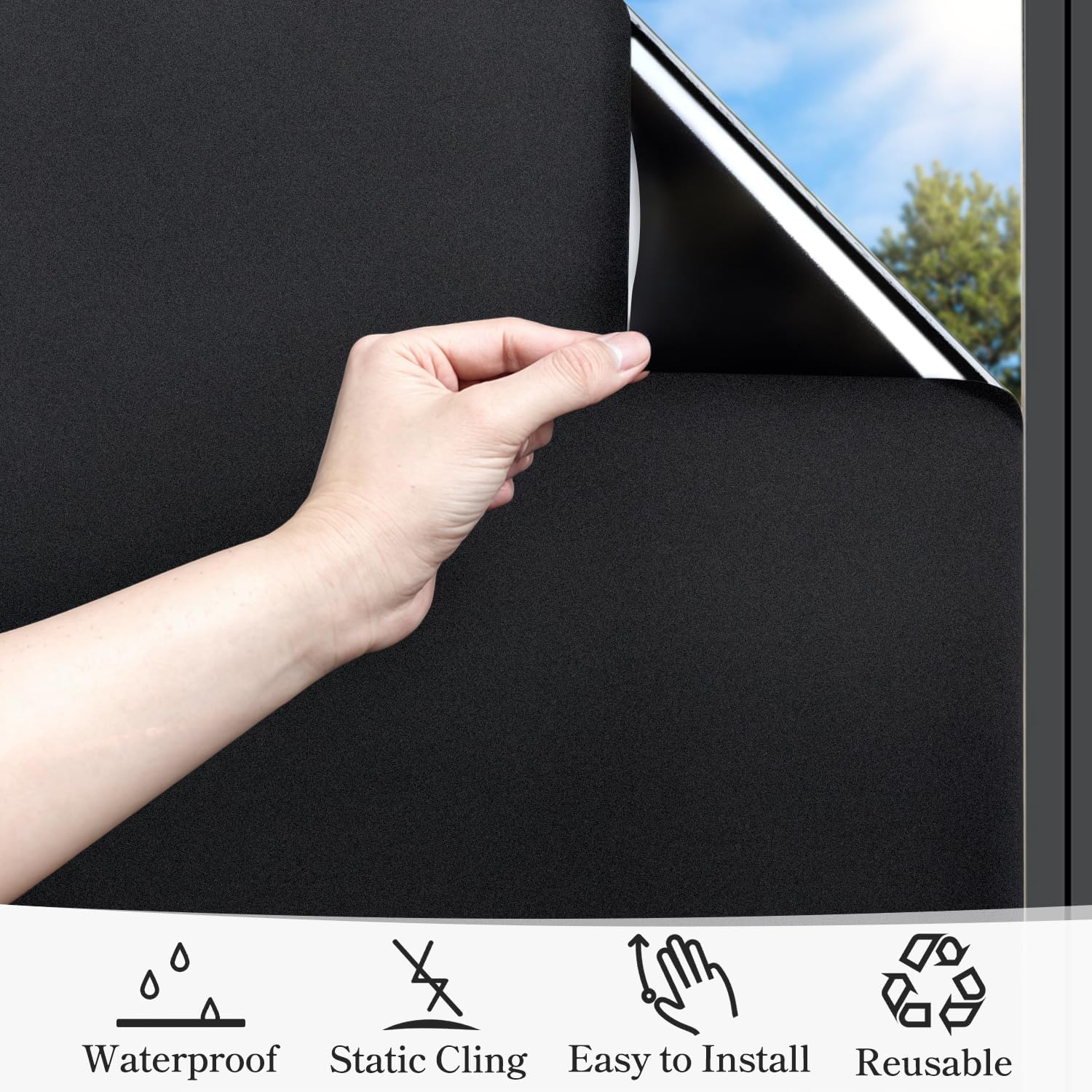 - Static Cling Film -- No glue and Eco-friendly design, it just needs some clean water for installation. This blackout window film can be removed easily without leaving residue and it can be reused. â—ŹDo not apply it on surfaces with direct sunlight or strong light, too high temperature may cause the glass cracking.