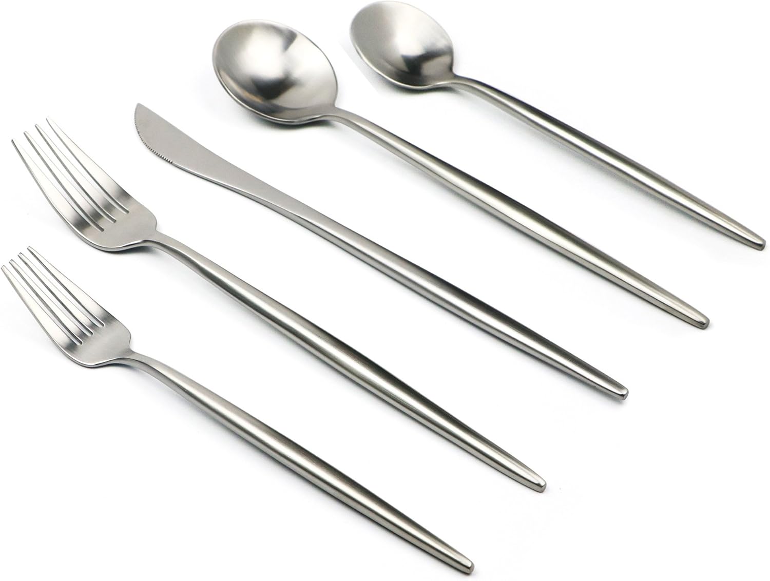 20-Pieces Luxury Silver 18/10 Stainless Steel Flatware Set, Matte Finish, Service for 4
