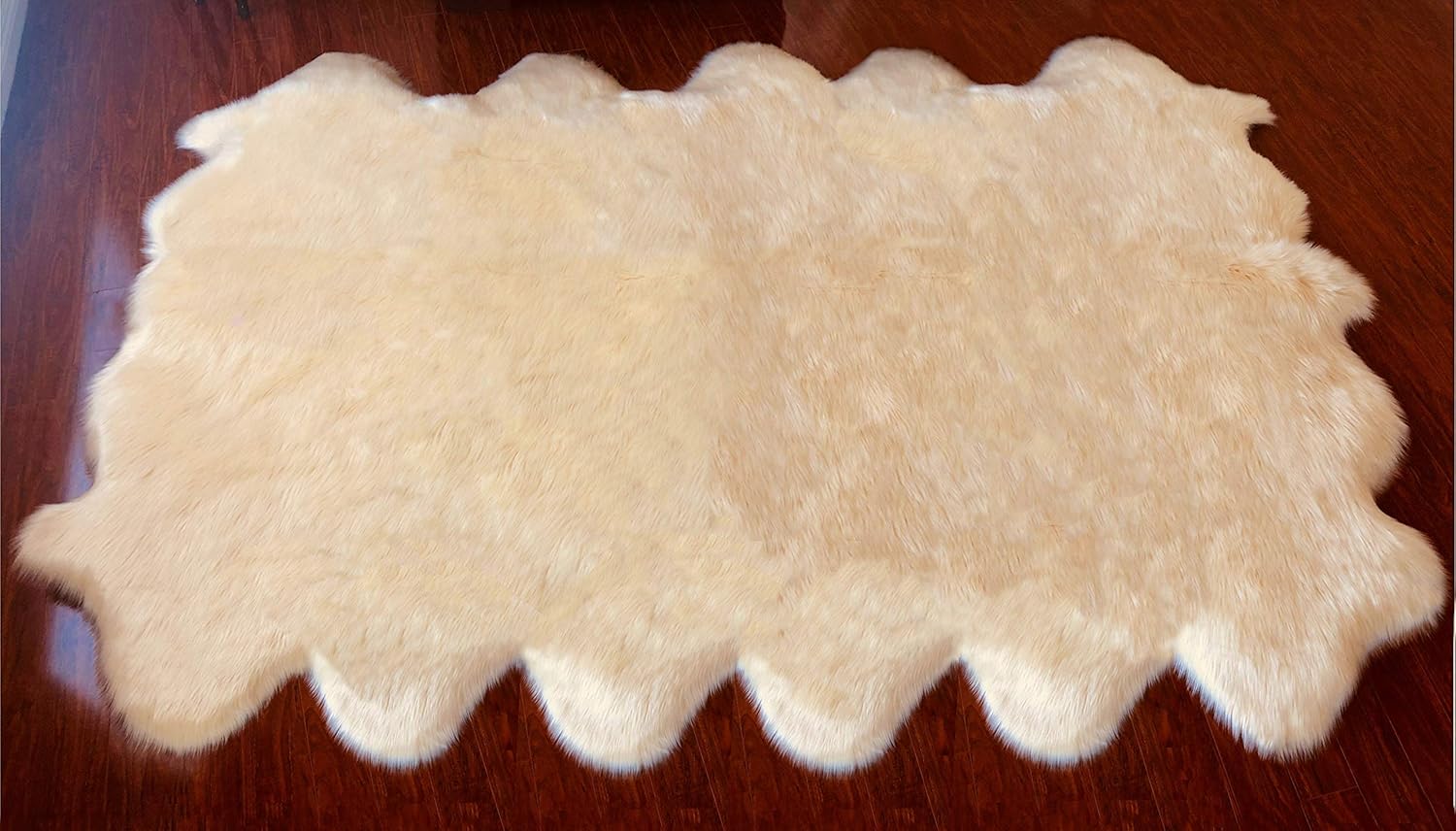 LAMBZY Faux Sheepskin Hypoallergenic Free Shape Silky Shag Rug, Luxury Shaggy Plush Carpet for Bedrooms Rugs Living Room Kids Rooms Sofa Floor, Duo Decto 12 Pelts 6'x12' Cream