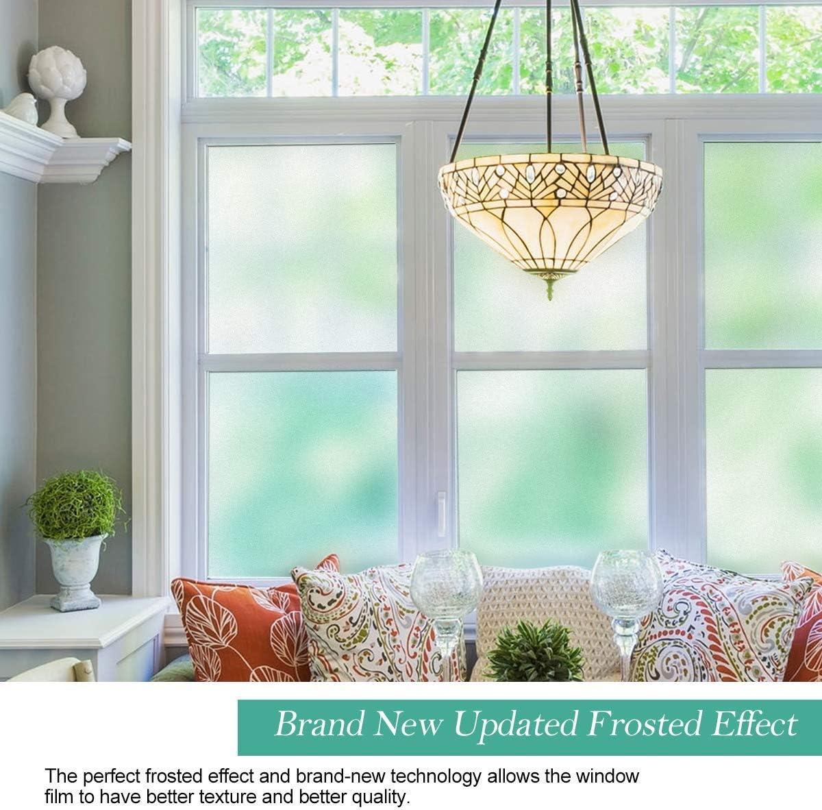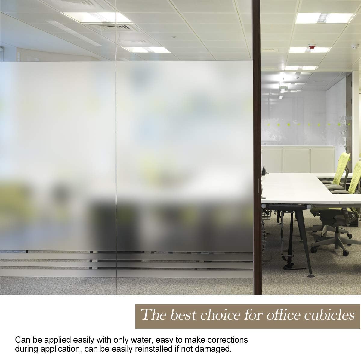 - ECONOMICAL & WIDE APPLICATION: No more heavy and troublesome curtains and blinds, simple decorative window film makes life more convenient and better. Suitable for all smooth and clean glass surfaces in office, bedroom, bathroom, living room, kitchen, balconie, cabinet, glass door, hotel, etc. Double-layered glass, frosted glass and other treated uneven glass is not applicable for window frosting film.