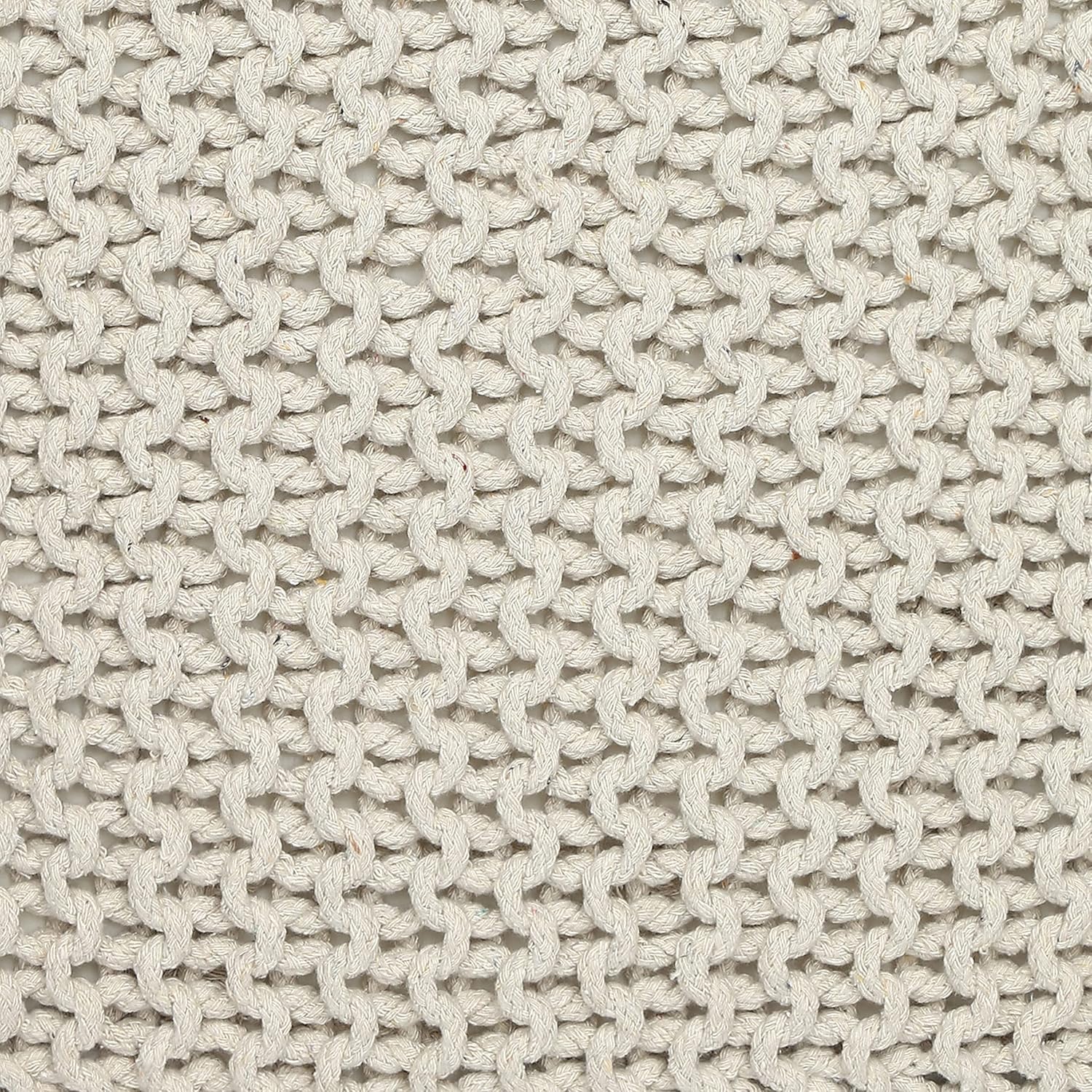 - HANDMADE FROM THE FINEST MATERIALS: The outer material on this eye-catching pouf ottoman is made from 100% cotton chord knitted in a unique pattern and filled with thermocol block inserts. Each floor pouf measures 16x16x16 inches and is handmade by our talented in-house artisans. This floor pouf is perfect when you need to rest your leg