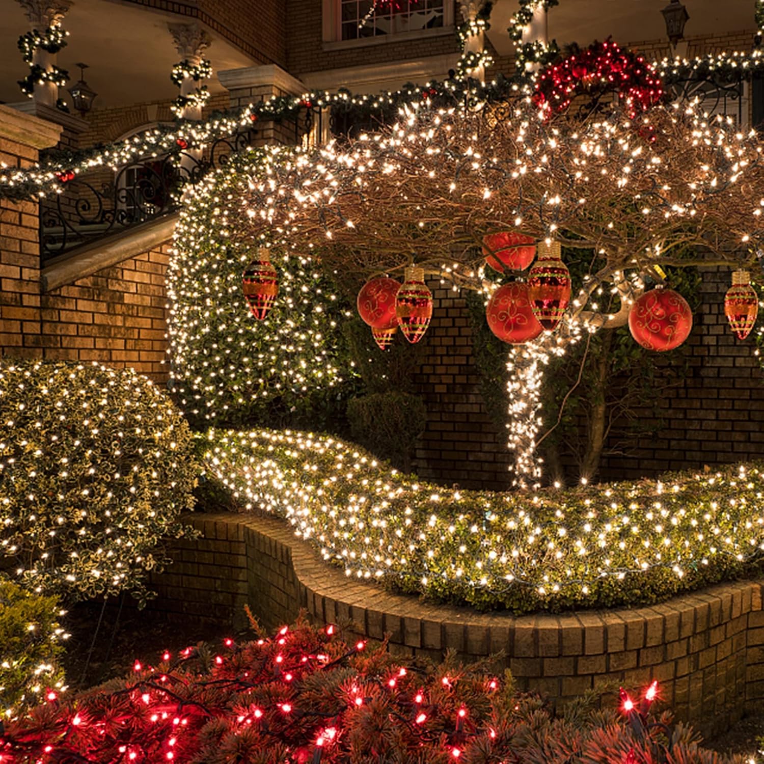 - 66ft Christmas string lights with 200 warm white individual LED bulbs. Each Christmas lights has end-to-end connection, you can connect up to 4 sets together to illuminate a wider range.
