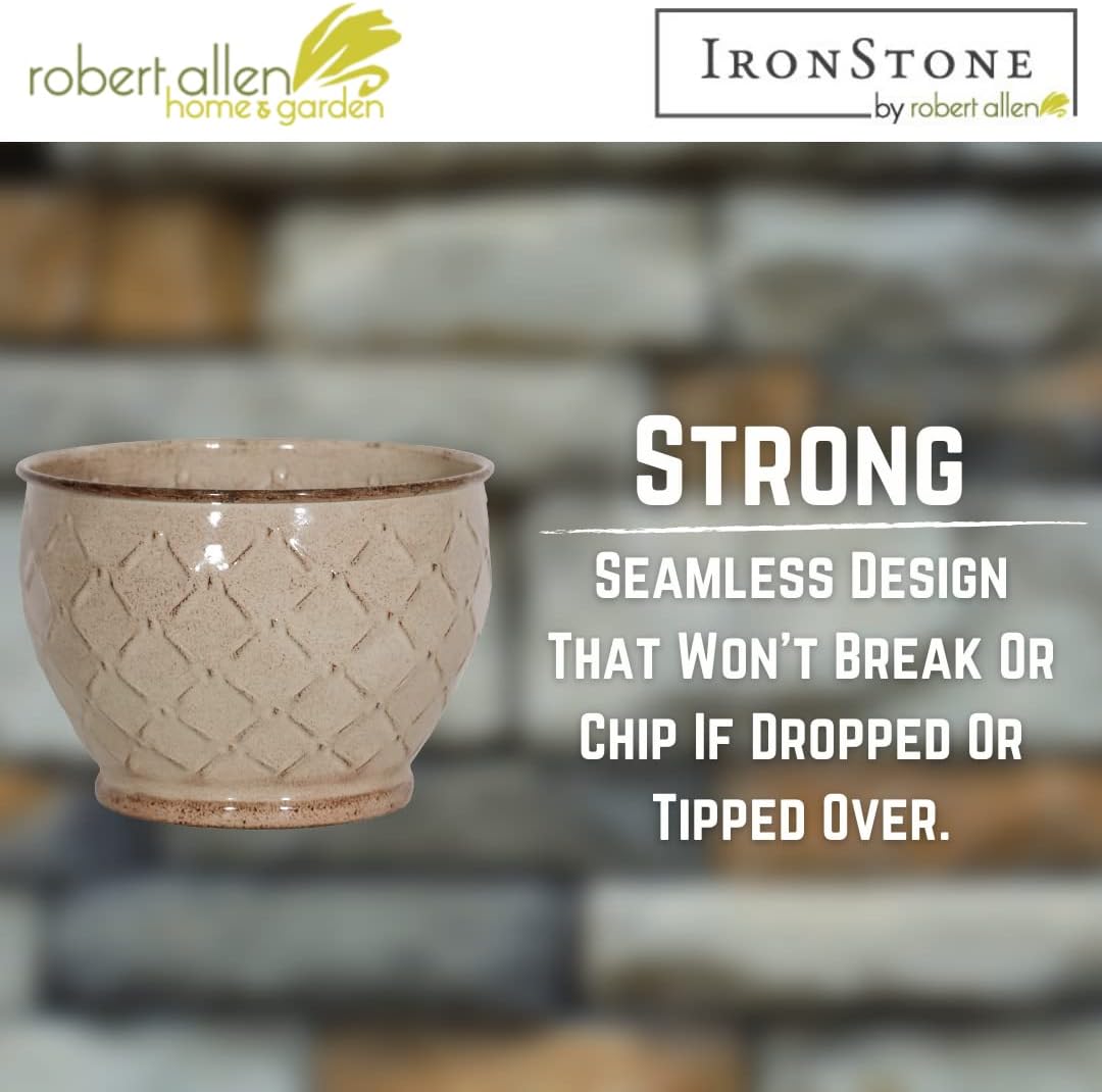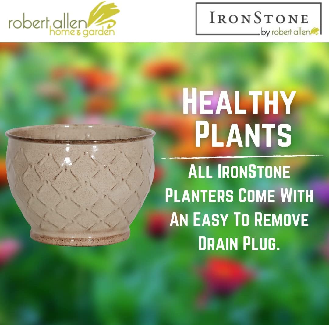 - -DRAINAGE – Contains a removable drain plug. Each IronStone planter comes with a drain plug that proves very useful whether inside or out during the changing seasons.