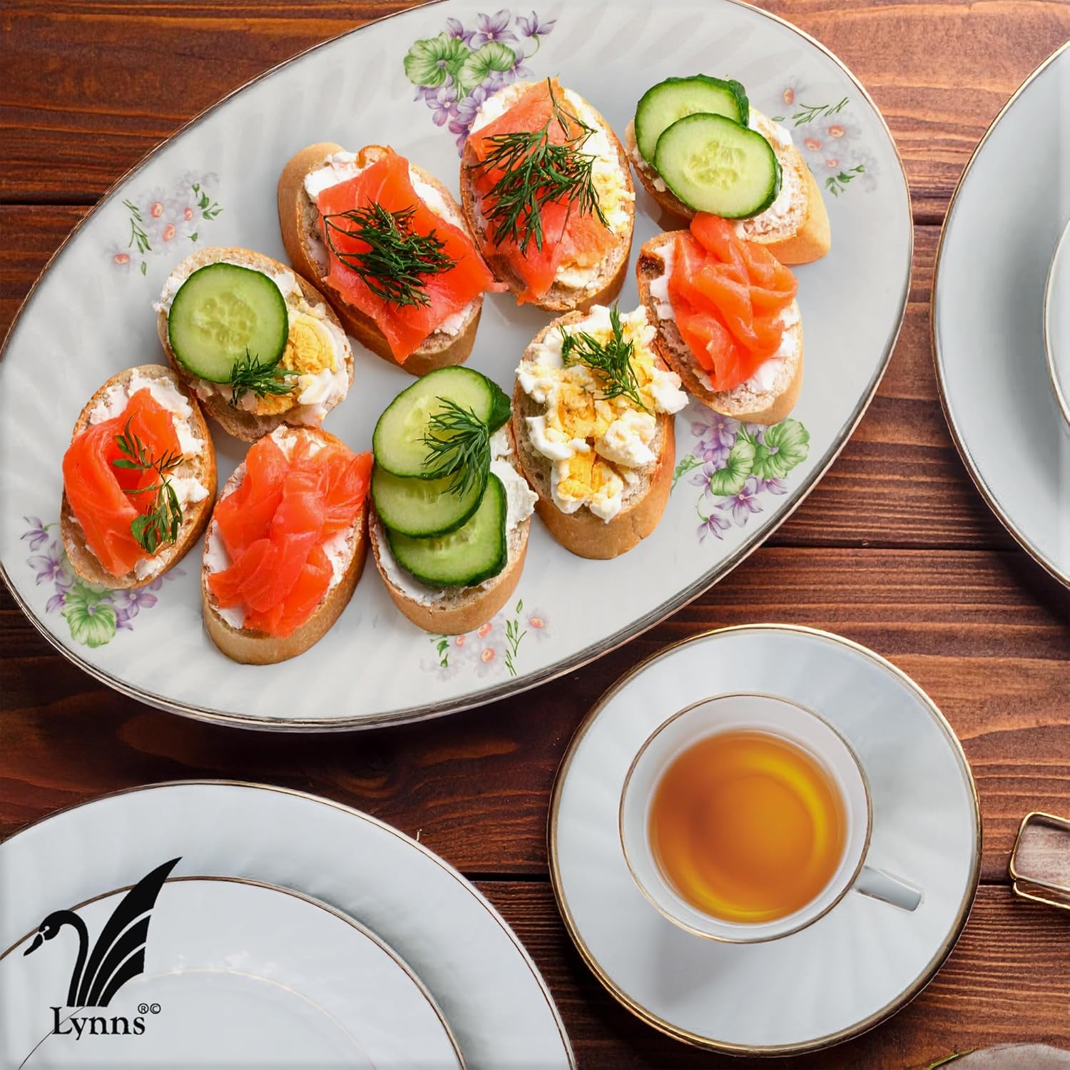 Lynns Paradise Marguerite 14-Inch Oval Platter, Set of 2, Purple; Heavy Duty; Chip Resistant; Lead and Cadmium Free; Freezer to Oven Safe up to 500°F