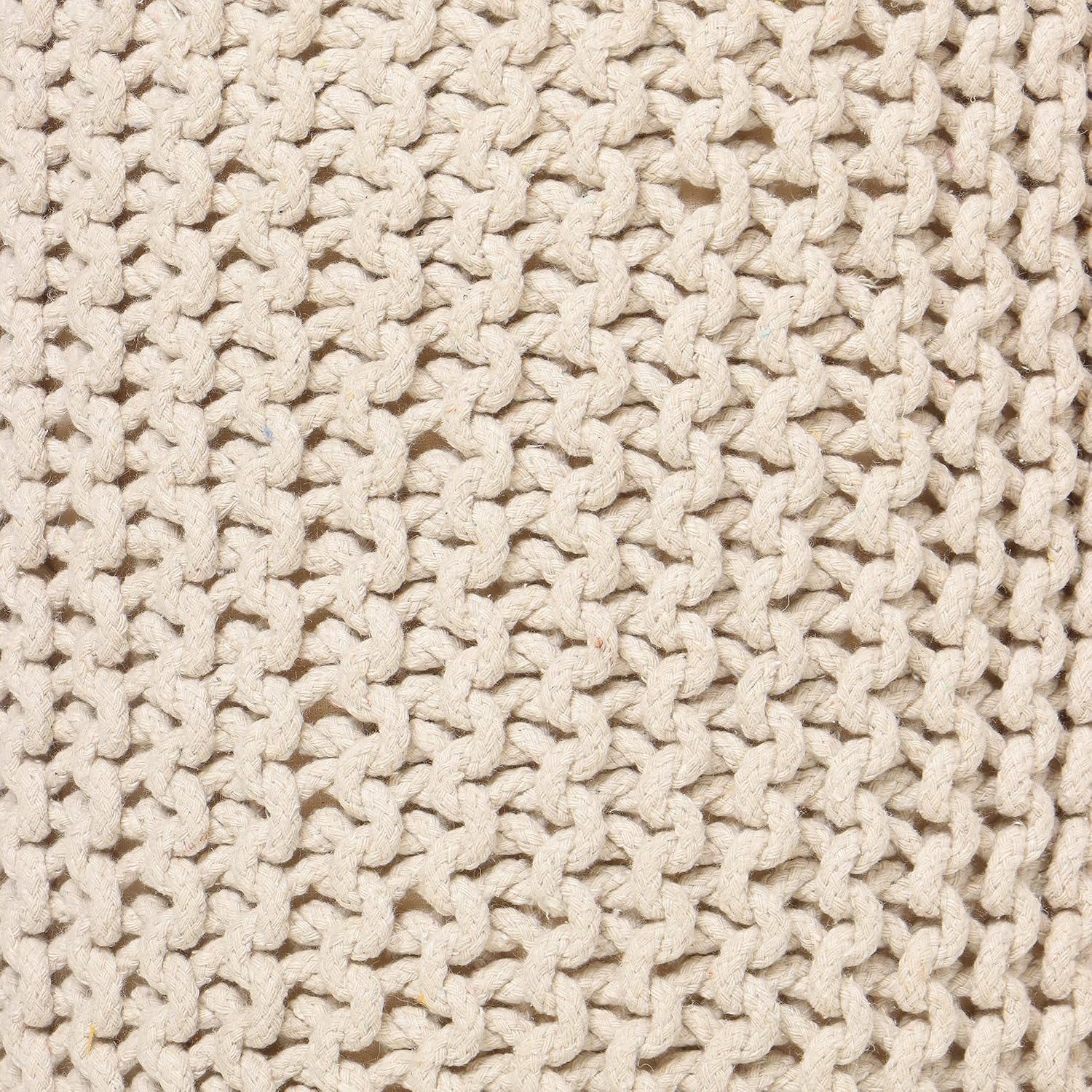 - HANDMADE FROM THE FINEST MATERIALS: The outer material on this eye-catching pouf ottoman is made from 100% cotton chord knitted in a unique pattern and filled with thermocol block inserts. Each floor pouf measures 16x16x16 inches and is handmade by our talented in-house artisans. This floor pouf is perfect when you need to rest your leg