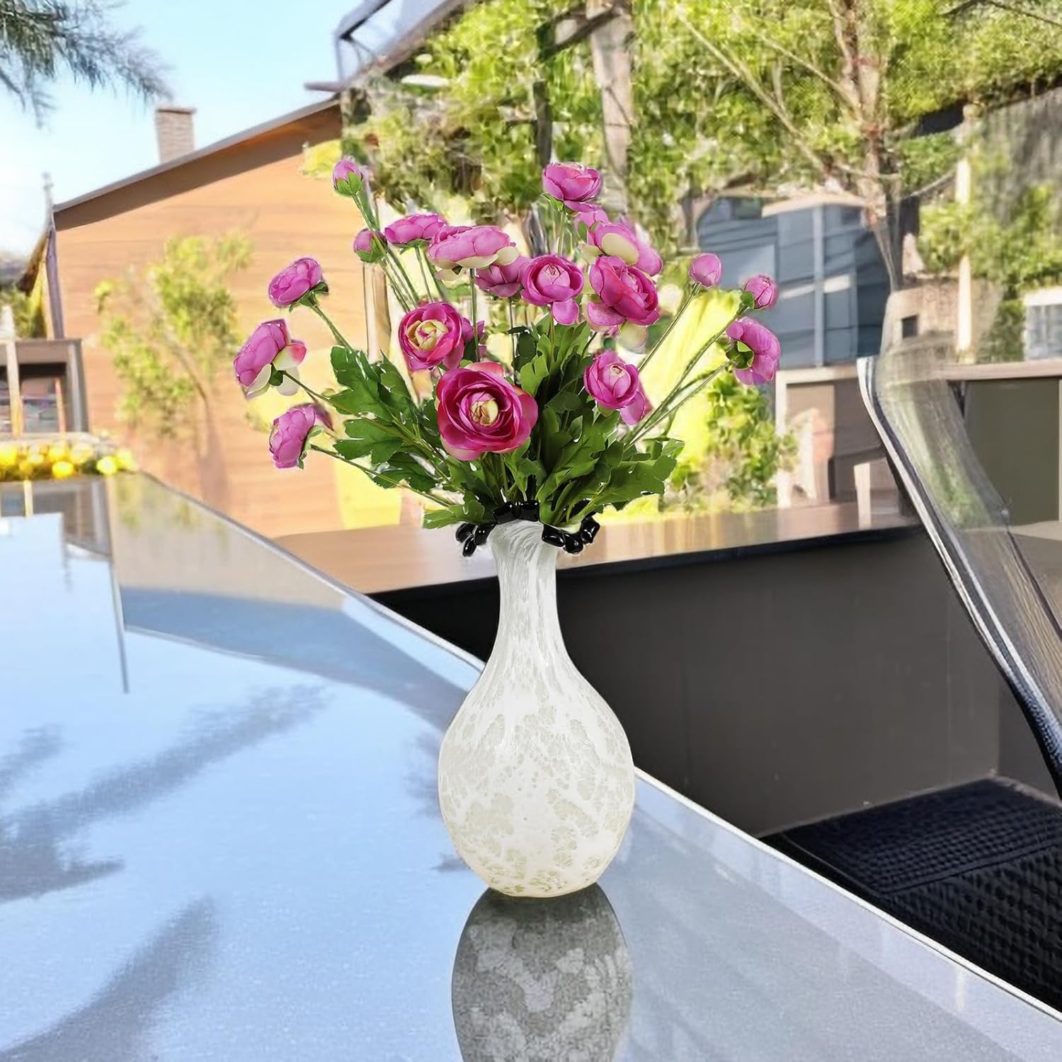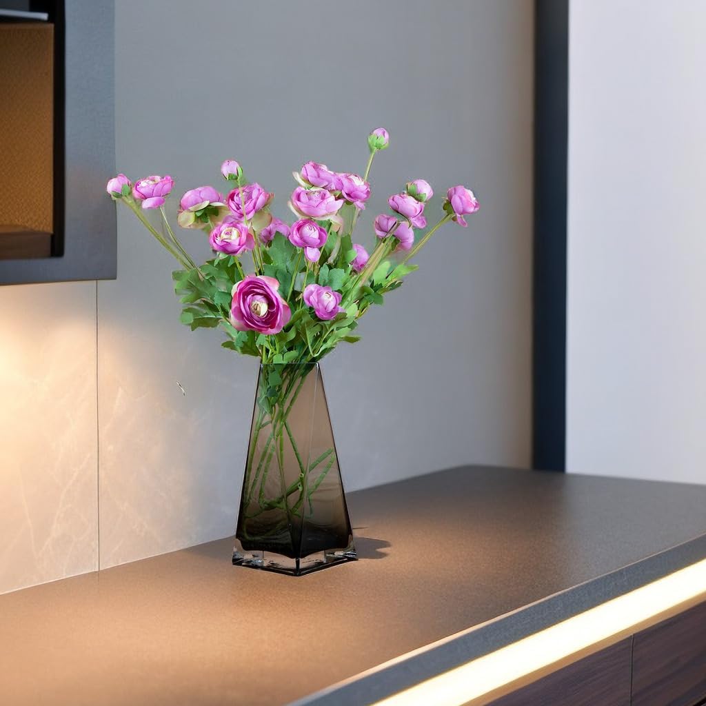 - The purple silk flower of Persian buttercup is 23 inches long,with a natural and realistic craft.they can withstand the test of time and still maintain their bright colors and vitality, without fading or withering. The flower head is made of high-quality silk,and the plastic of the flower stem contains soft iron wires that can be freely created by bending,folding, stretching, cutting, and other methods.
