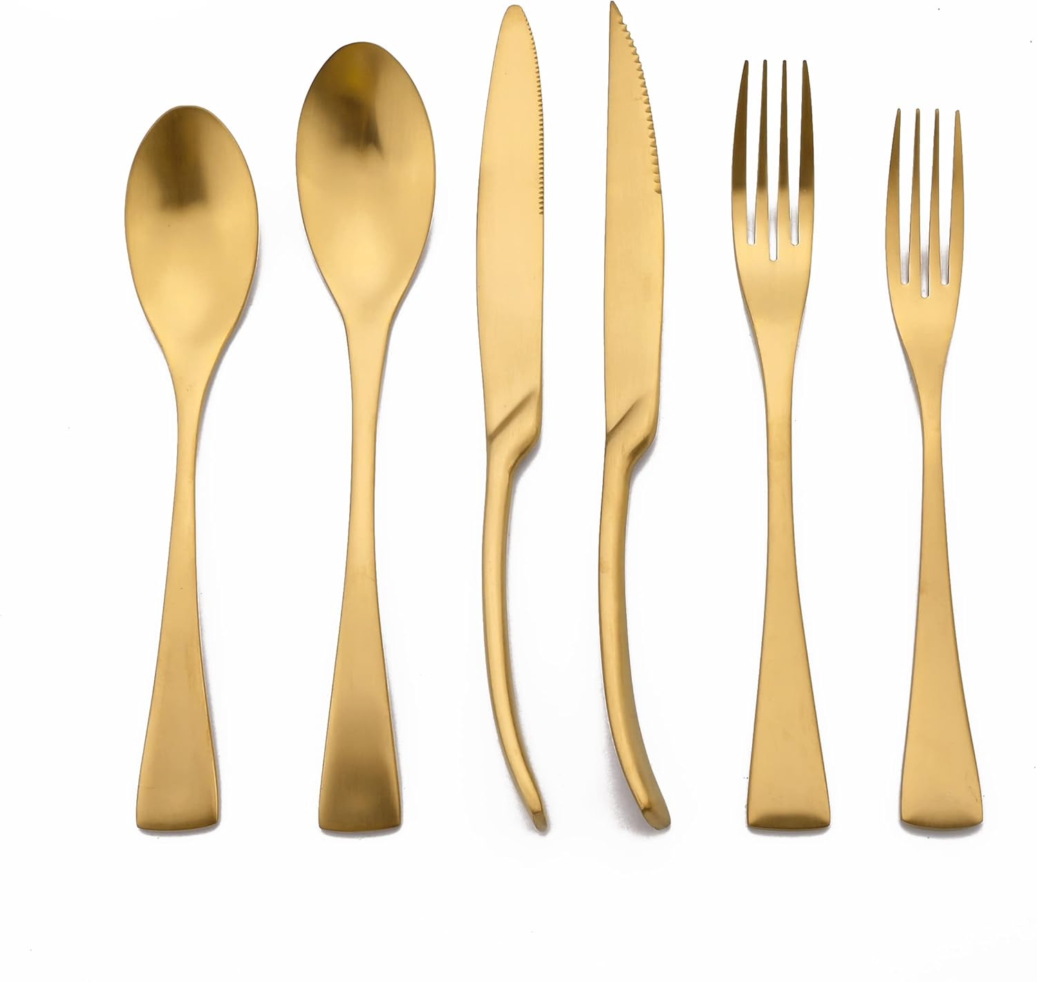 - MATTE FLATWARE SET 6 PIECES: Dinner Knife, Steak Knife, Dinner Spoon, Dinner Fork,Dessert Spoon, Salad Fork.