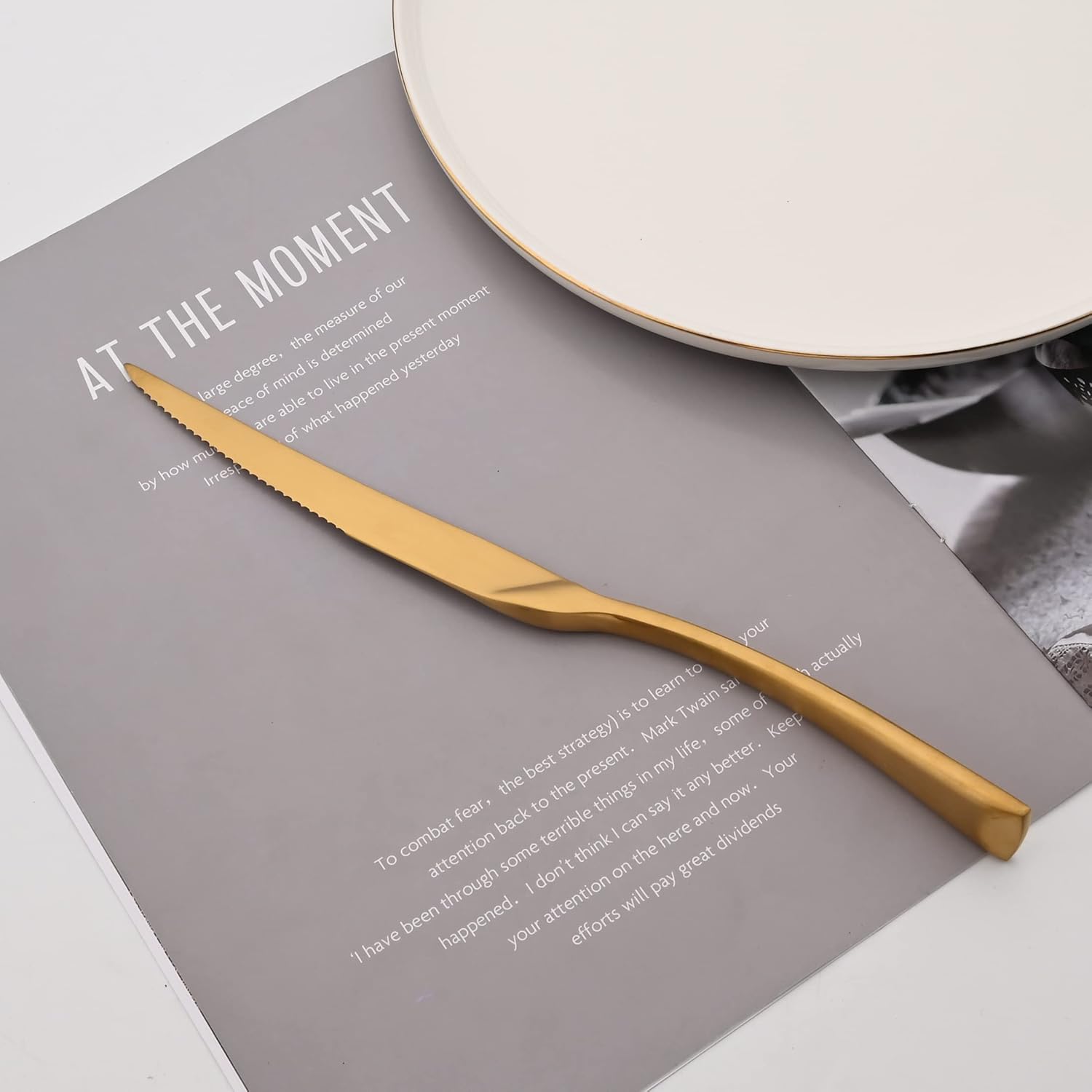 - MATTE FLATWARE SET 24 PIECES: Dinner Knife, Steak Knife, Dinner Spoon, Dinner Fork,Dessert Spoon, Salad Fork.