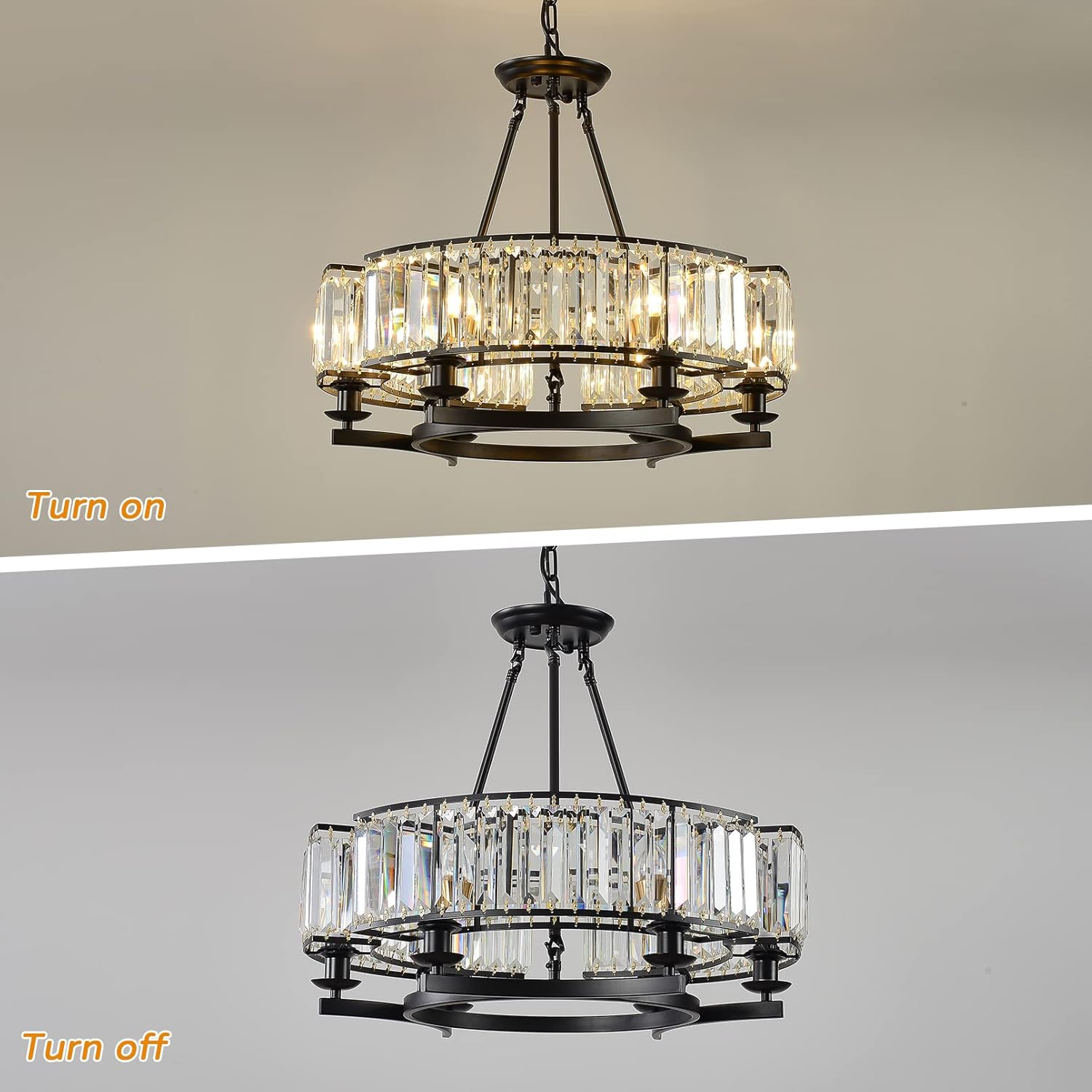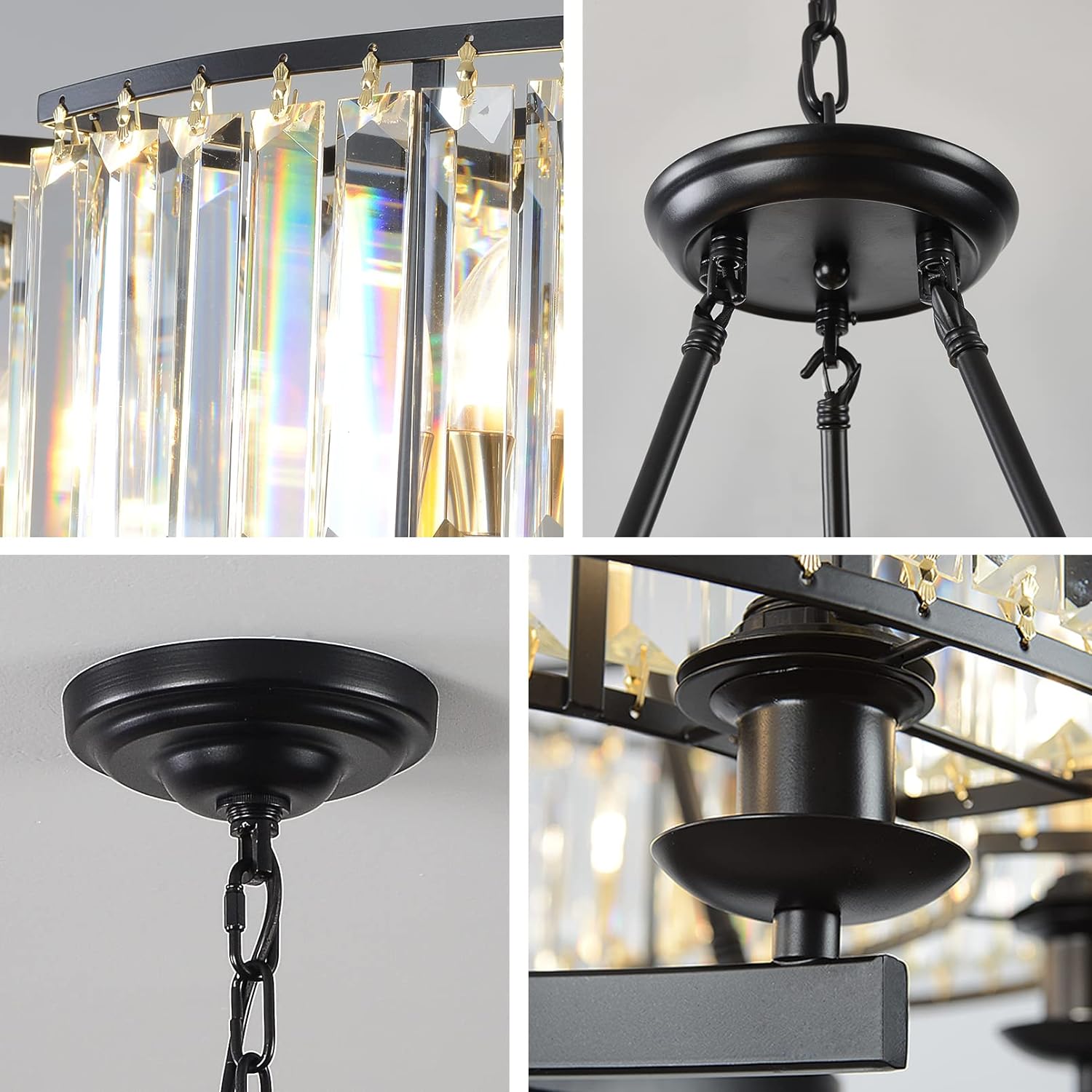 - Two Ways To Install: This black crystal chandelier can be installed as pendant light with an adjusted chain, as will as ceiling chandelier without the chain.
