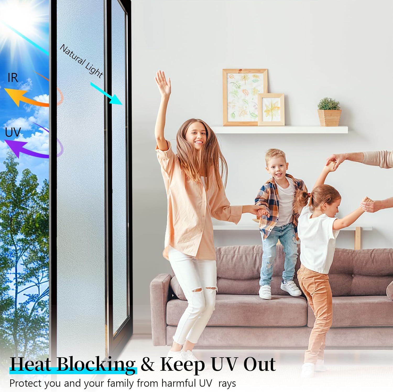 - Frosted window film for windows, more than 96% UV protection, heat insulation in the summer and heat preservation in the winter. While provides a maximum level of window privacy