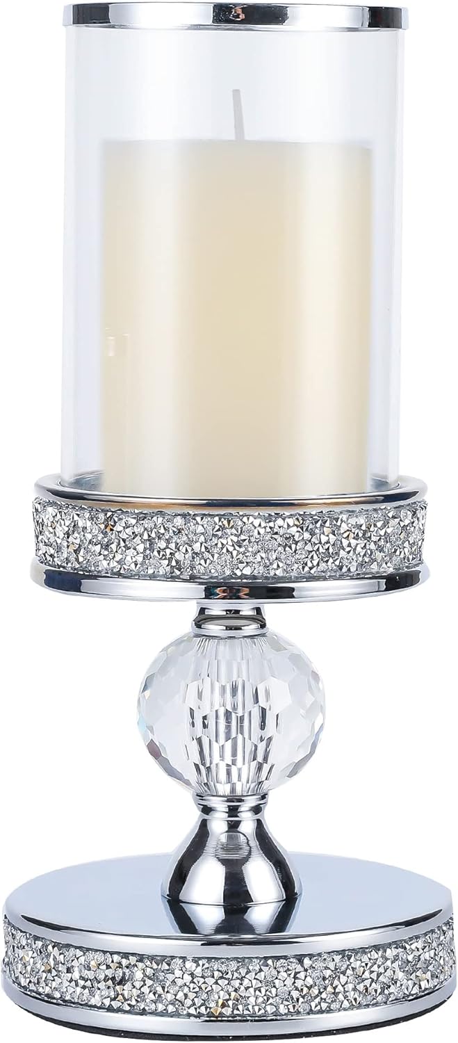 - 【Crystal + Metal Design Candle Holder】 This pillar candle holder is made of stainless chrome metal,both the top and bottom are decorated with crystal rhinestone, it is designed with shiny crystal elements to make it looks more classic and beautiful!