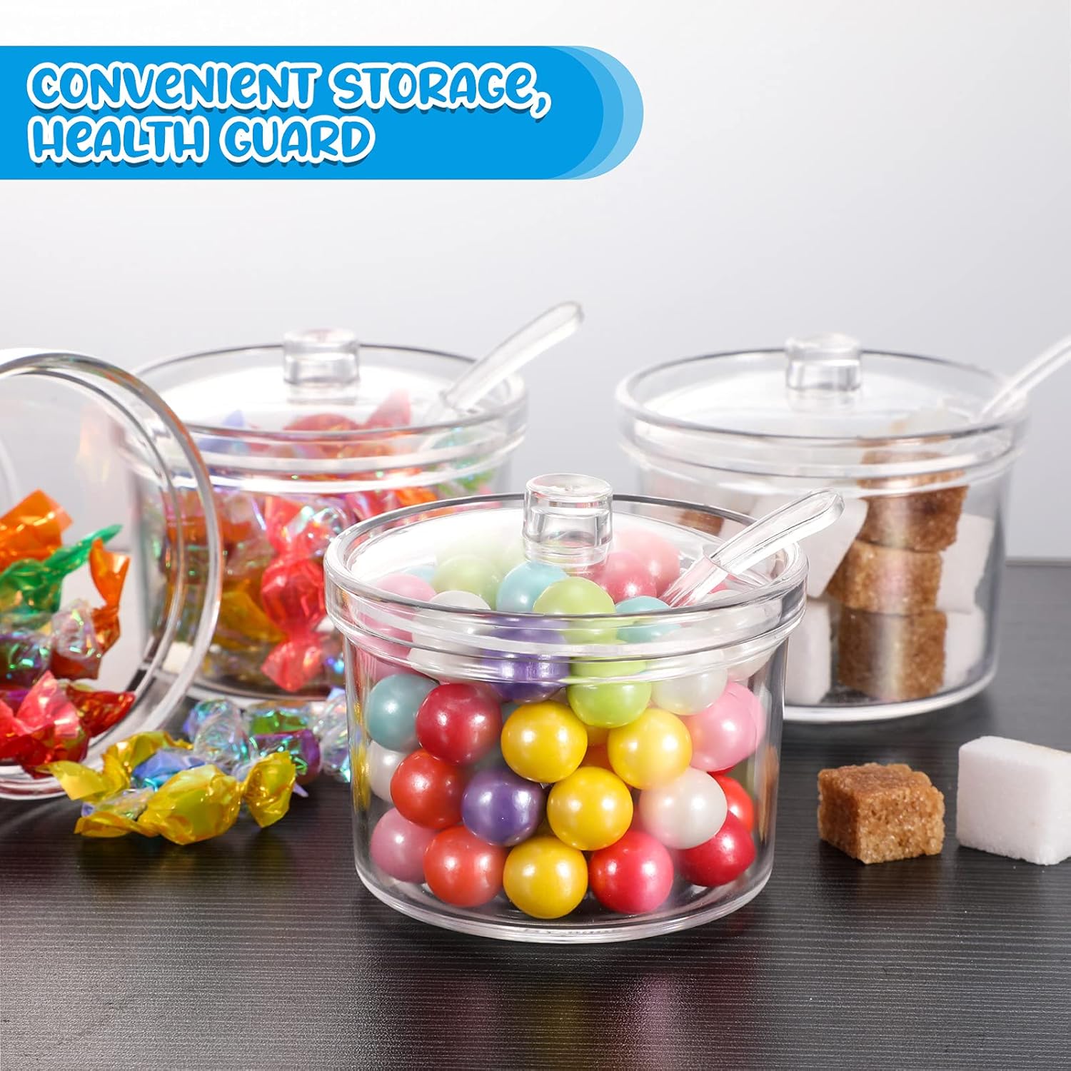 - Safety design: the clear sugar bowls with lid are beautiful in appearance, easy to use, and don't have to worry about scratching your hands, which can avoid your family and friends from worrying