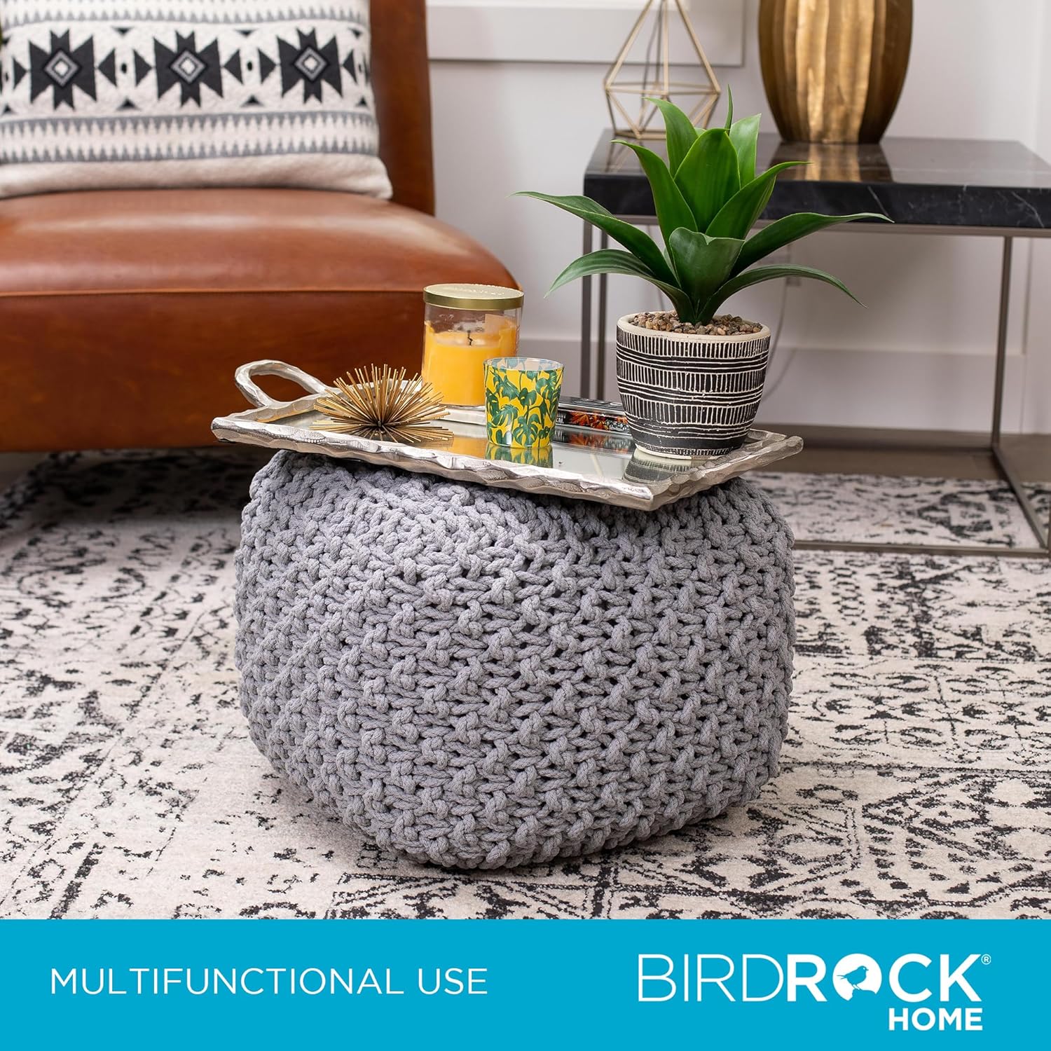 - COMFORTABLE & STYLISH SEATING: The BirdRock Home Round Pouf Ottoman is made with a cotton braided exterior and bean bag filling, providing a comfortable foot stool or extra seat. Ideal for living rooms and bedrooms, it adds both functionality and style to your space.
