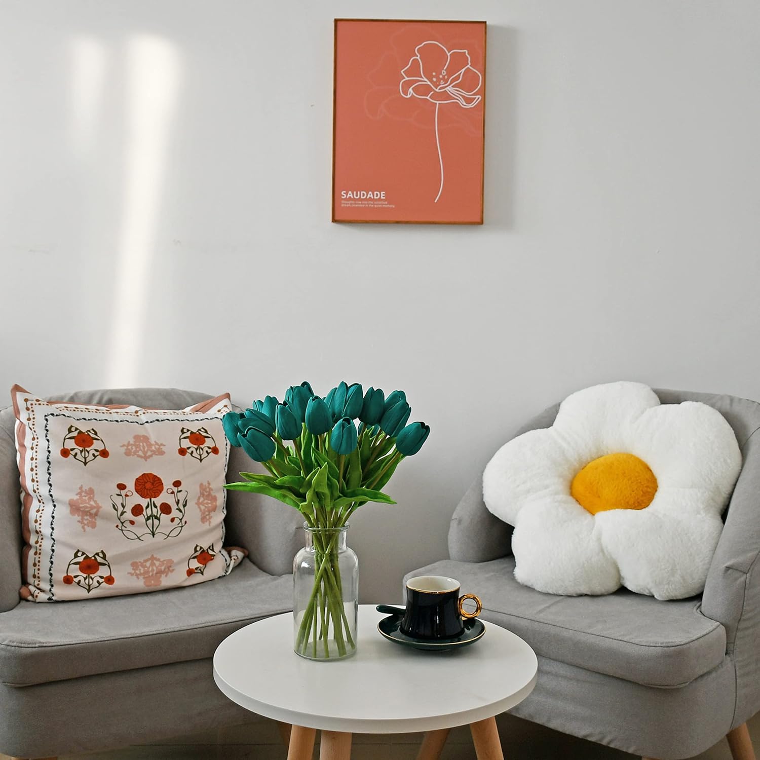 - All-Season Beauty with Gentle Color Care.These tulips bring timeless charm to Easter, Mother’s Day, weddings, or year-round décor. To preserve the soft tones of light-colored flowers—especially white—we recommend avoiding direct sunlight for long-term (6+ months) display, as PU petals may naturally yellow over time.