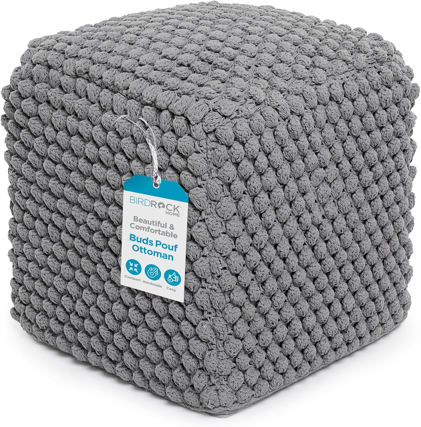 BIRDROCK HOME Buds Pouf Foot Stool Ottoman - Knit Bean Bag Floor Chair - Cotton Braided Cord - Great for The Living Room, Bedroom and Kids Room - Small Furniture (Grey - Buds)
