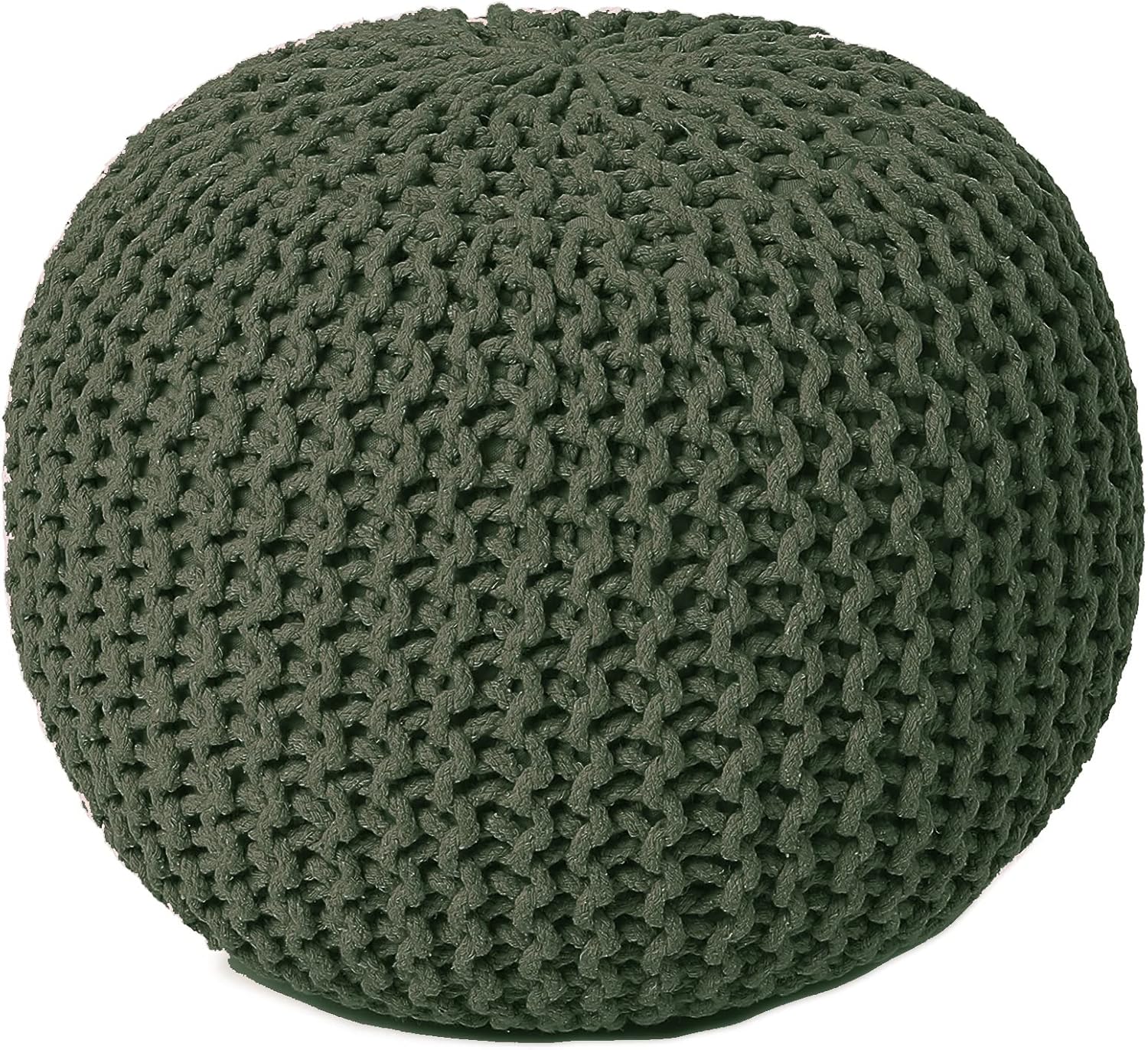 REDEARTH Round Hand Knitted Pouf - Foot Stool Bean Bag Ottoman - Cord Boho Pouffe - Poof Accent Beanbag Footrest for Living Room - Bedroom - Patio - Lounge (19.5"x19.5"x14") - Olive