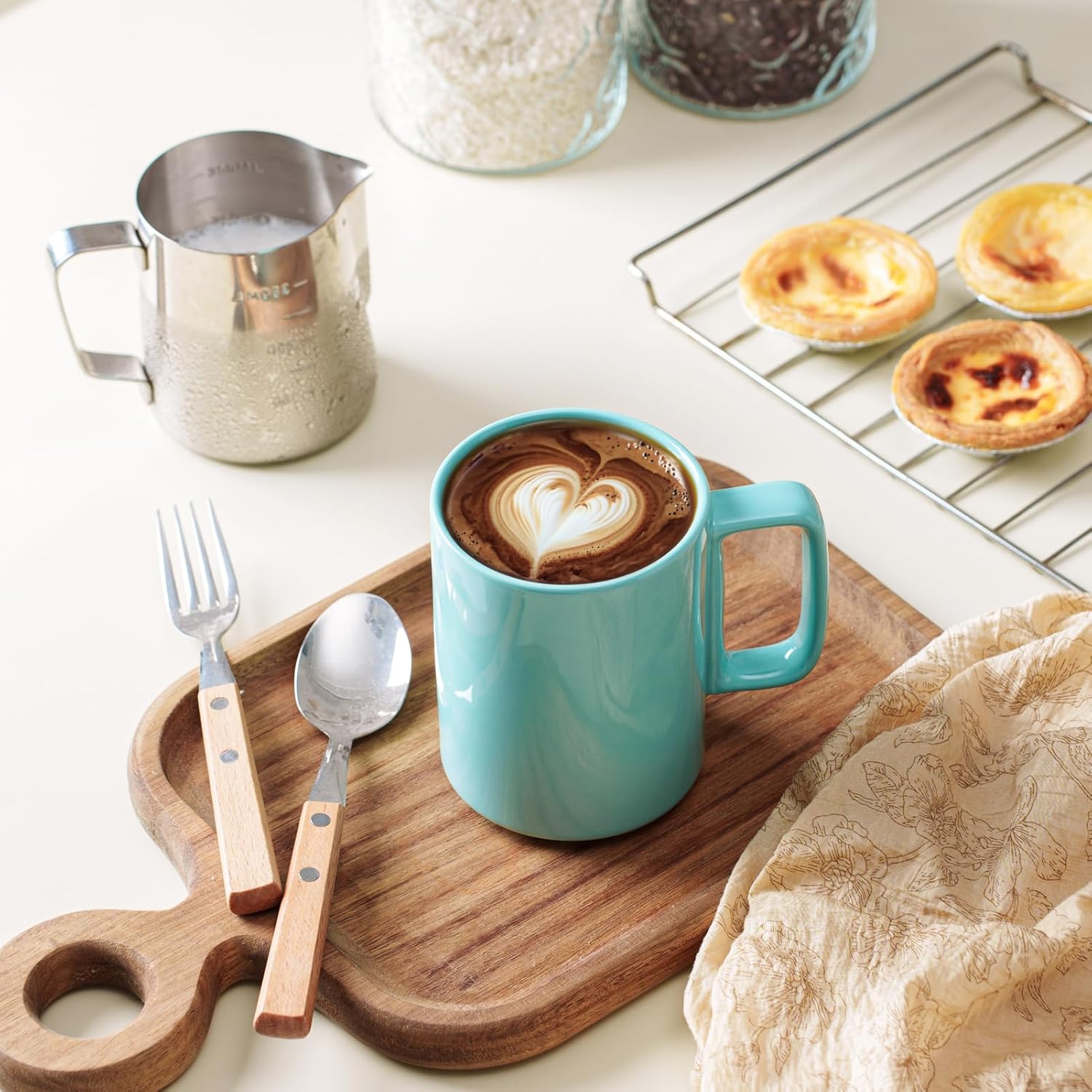 E-liu Porcelain Tea Mugs Coffee Mug Set, Large 15 Ounces Cups for Coffee, Tea, Cocoa, and Mulled Drinks, Set of 6, Turquoise