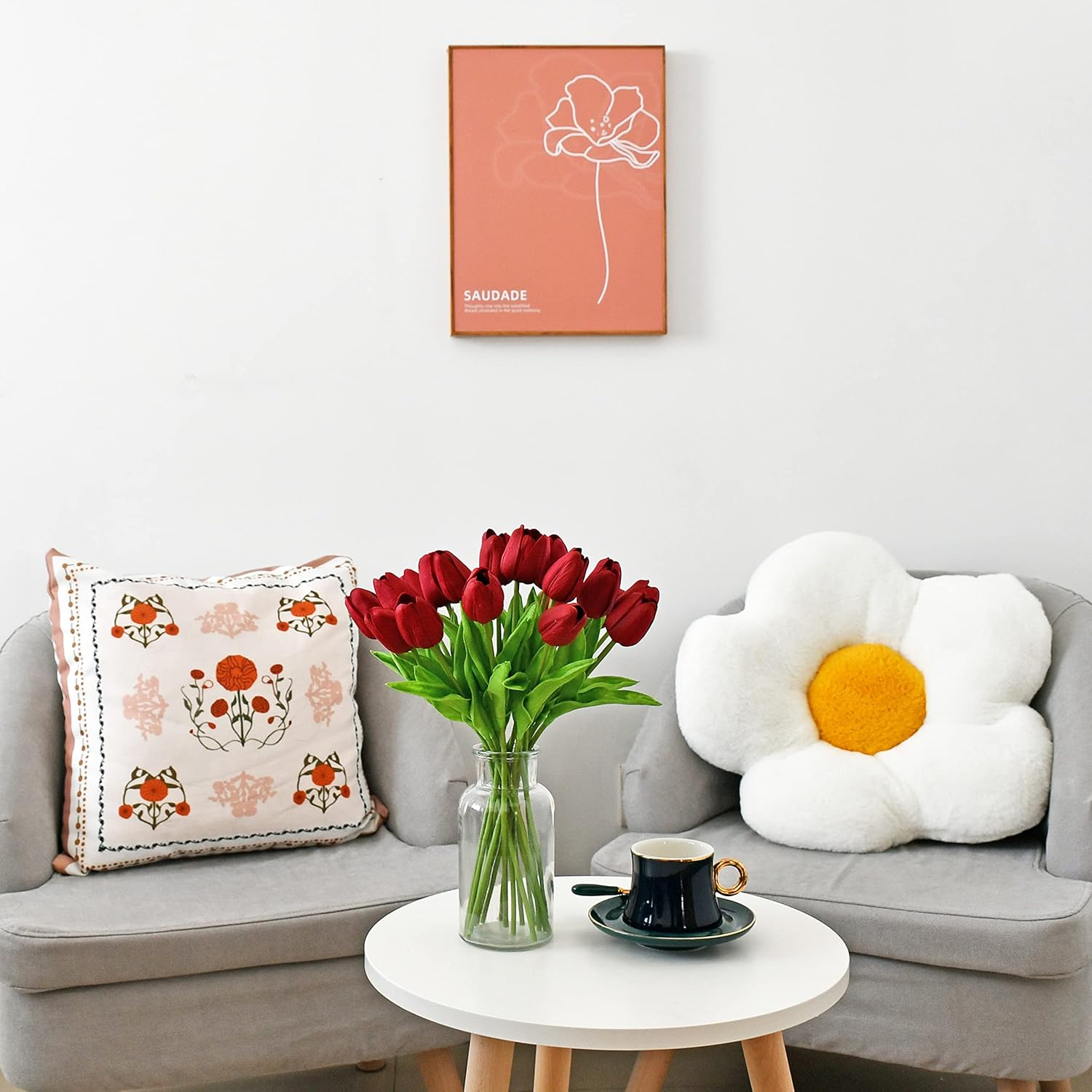 - All-Season Beauty with Gentle Color Care.These tulips bring timeless charm to Easter, Mother’s Day, weddings, or year-round décor. To preserve the soft tones of light-colored flowers—especially white—we recommend avoiding direct sunlight for long-term (6+ months) display, as PU petals may naturally yellow over time.