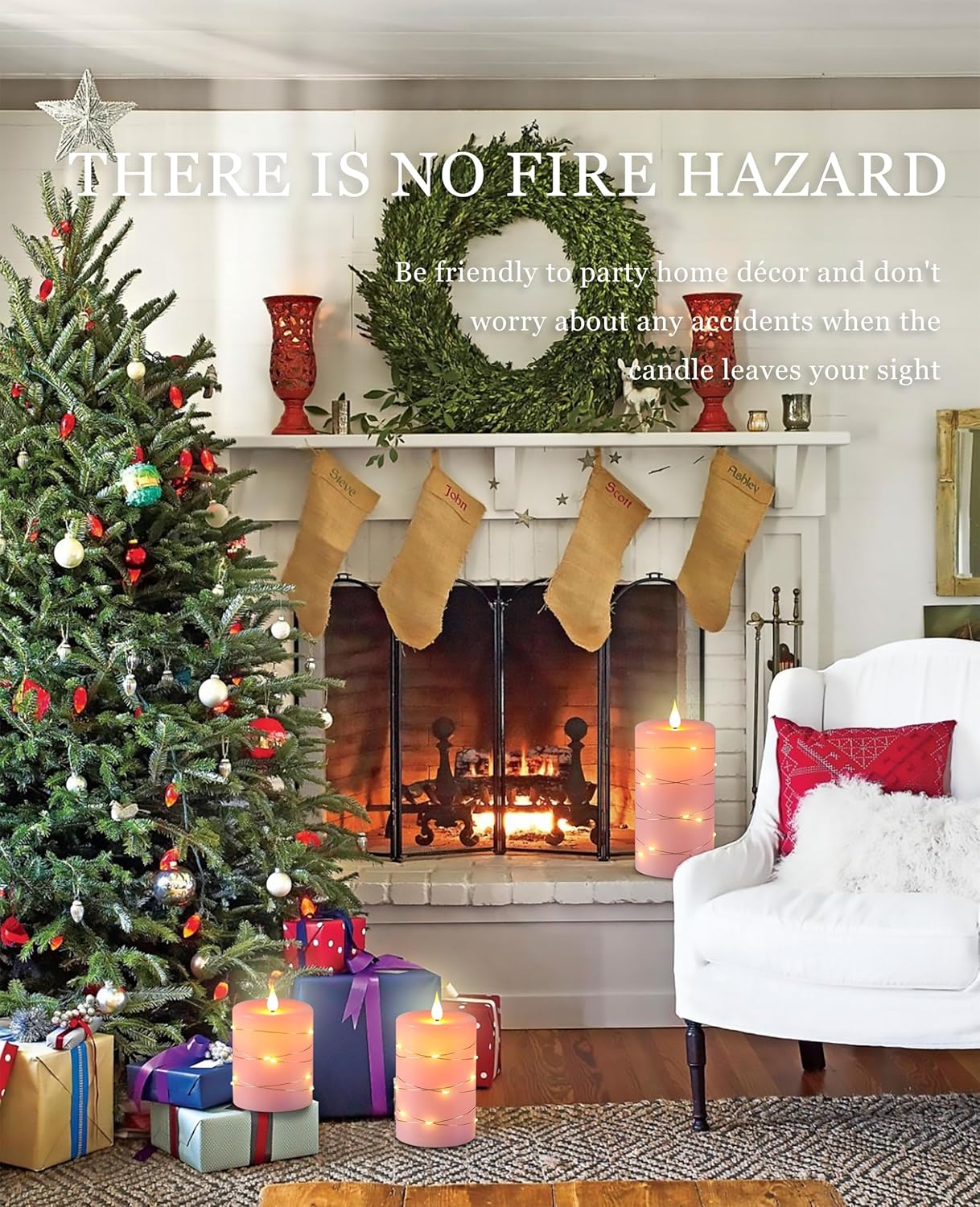 - Battery Powered Candles-Flameless Candles-Shining Stars: The real flame candle exudes a classic and noble atmosphere. The difference from traditional candles is the addition of starlight. Flameless candles with string lights, each candle is decorated with 12-16 small lamp beads, and each candle is surrounded by bright and delicate light. Wrapped in a silver string of lights, this is a unique aesthetic effect that combines a fairy-tale lighting appearance with classical beauty.