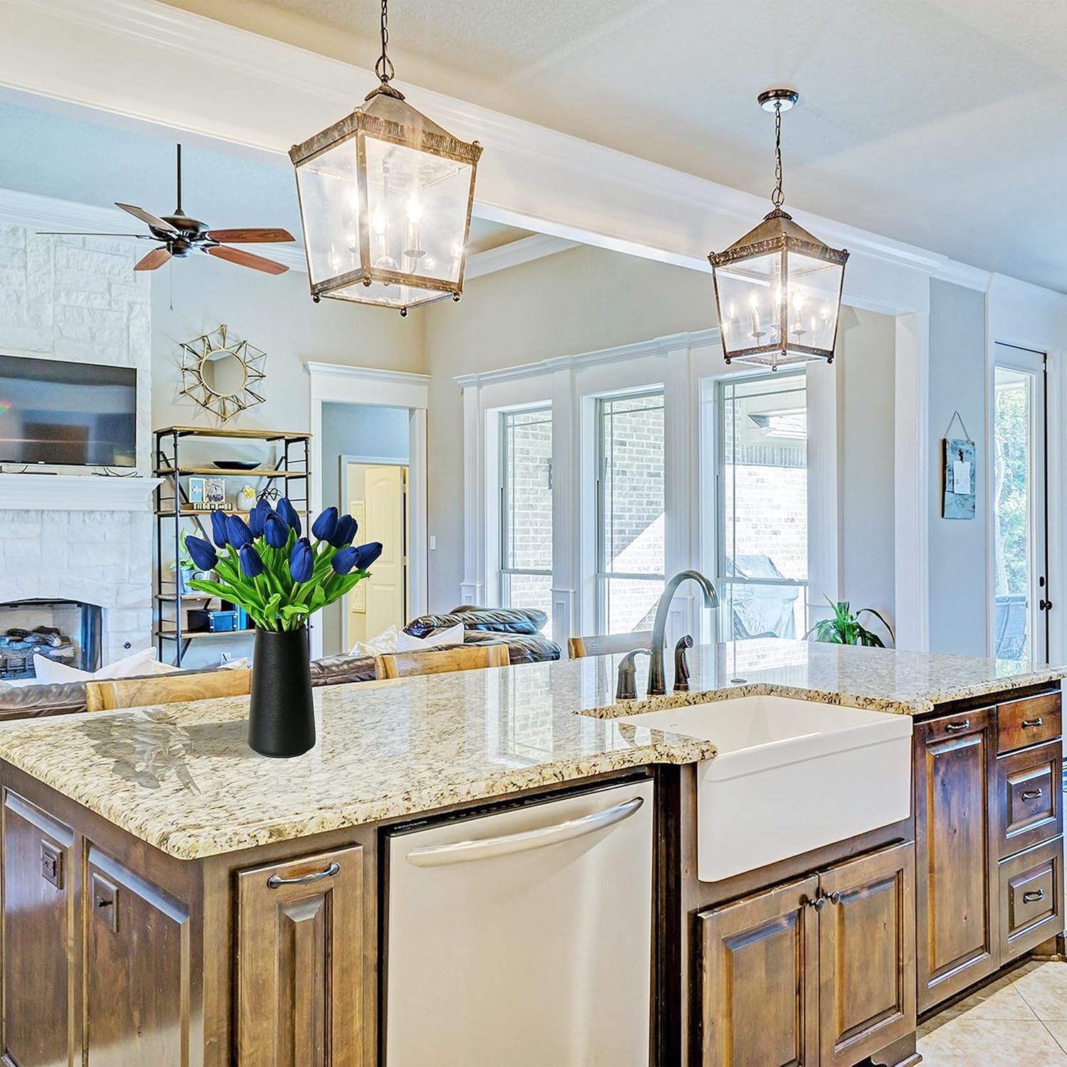 Mandy's Artificial Tulips 20 Stems Navy Blue PU Faux Flowers for Wedding Home Decor 13.5 Inch