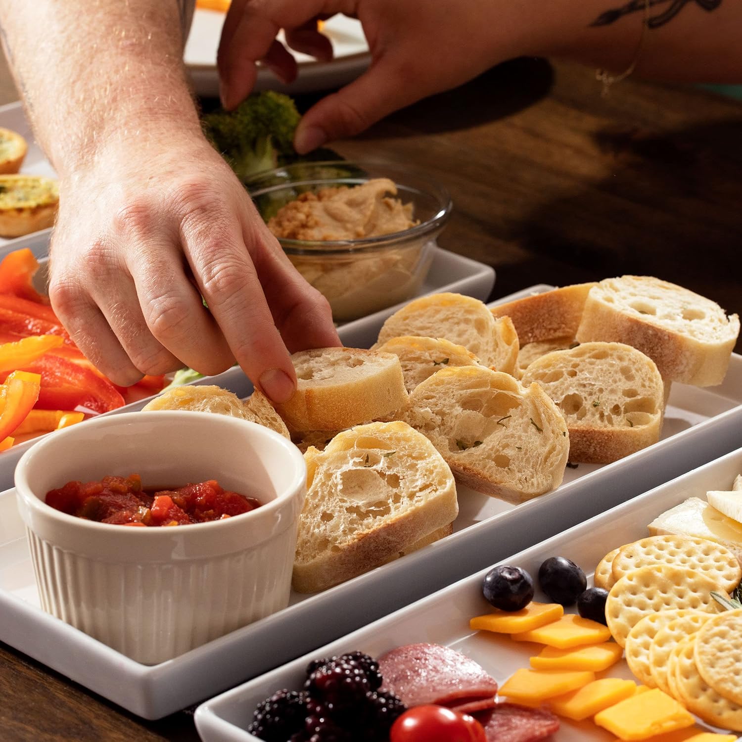 - Durable Rectangle Plates β Each serving dish is made with a thick, highly durable ceramic material to prevent them from cracking or breaking; The appetizer serving trays also feature a lip
