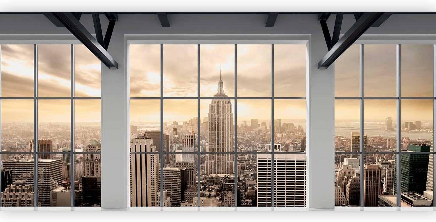 artgeist Wall Mural Peel and Stick New York City 212x98 in - XXL Self-Adhesive Corner Wallpaper Removable Large Sticker Foil Angle Wallpaper Wall Decor Print Window View Skyline Panorama c-A-0074-a-e