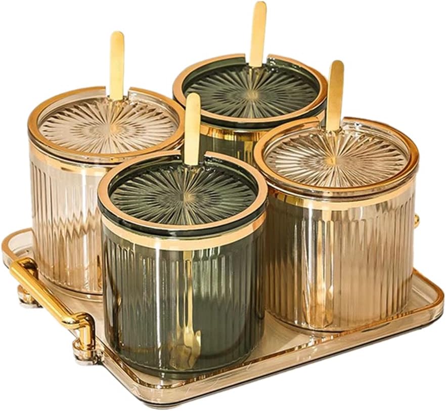 - ▲▲【Material】: Transparent thickened acrylic condiment container, made of PP plastic, equipped with 4 metal spoons and a practical tray with a handle, sturdy and corrosion-resistant, it can be effectively stored while decorating home life, adding color
