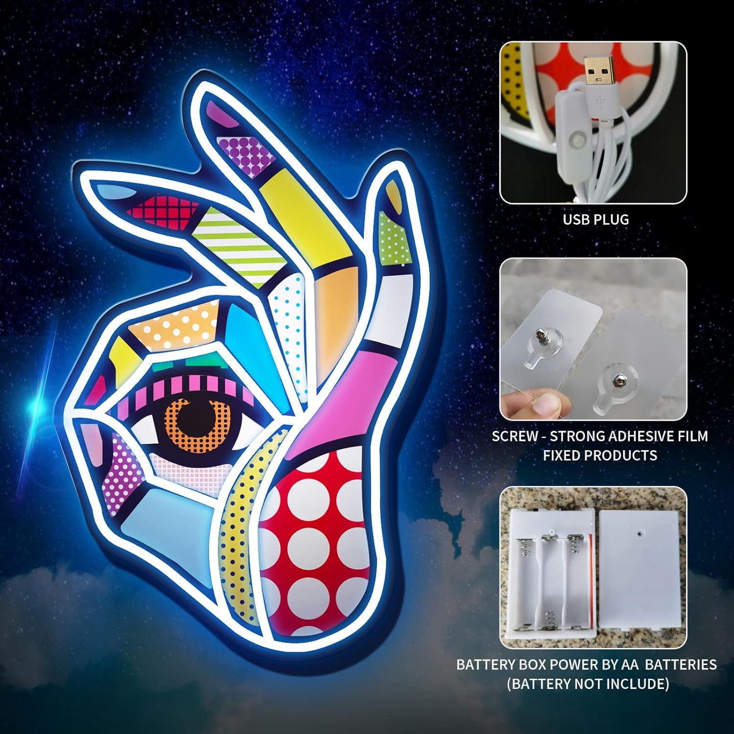 POP LED Neon Sign, Battery & USB Operated - Okay Neon Sign Wall Decor, Hands Off Home, Bedroom Decoration