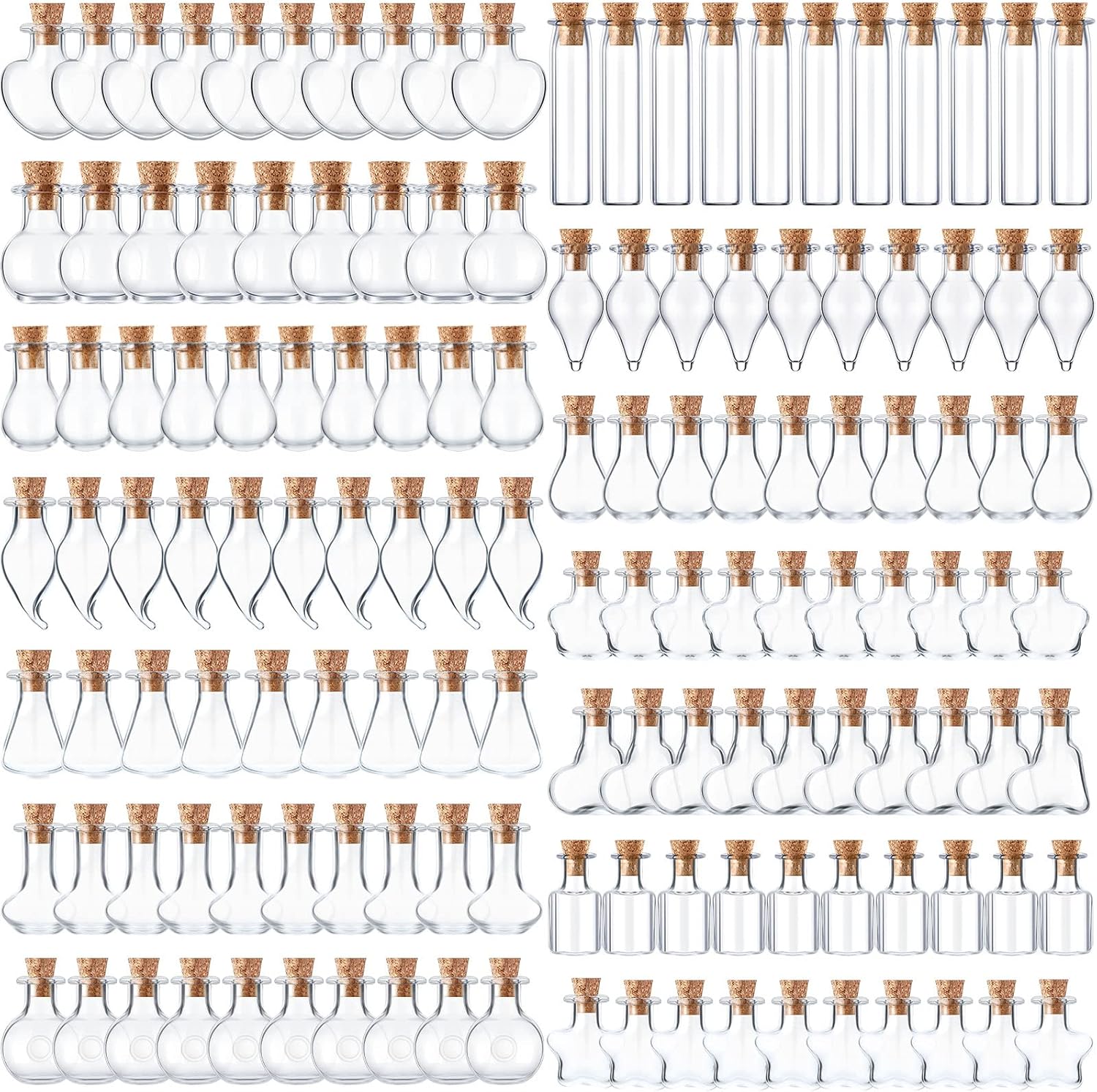 140 Pcs Mini Glass Bottles with Cork Stoppers Tiny Wishing Potion Bottles, 14 Shapes, Small Spell Apothecary Jar Vials Witchcraft Drifting Jar for Wedding Halloween Party Arts DIY Crafts