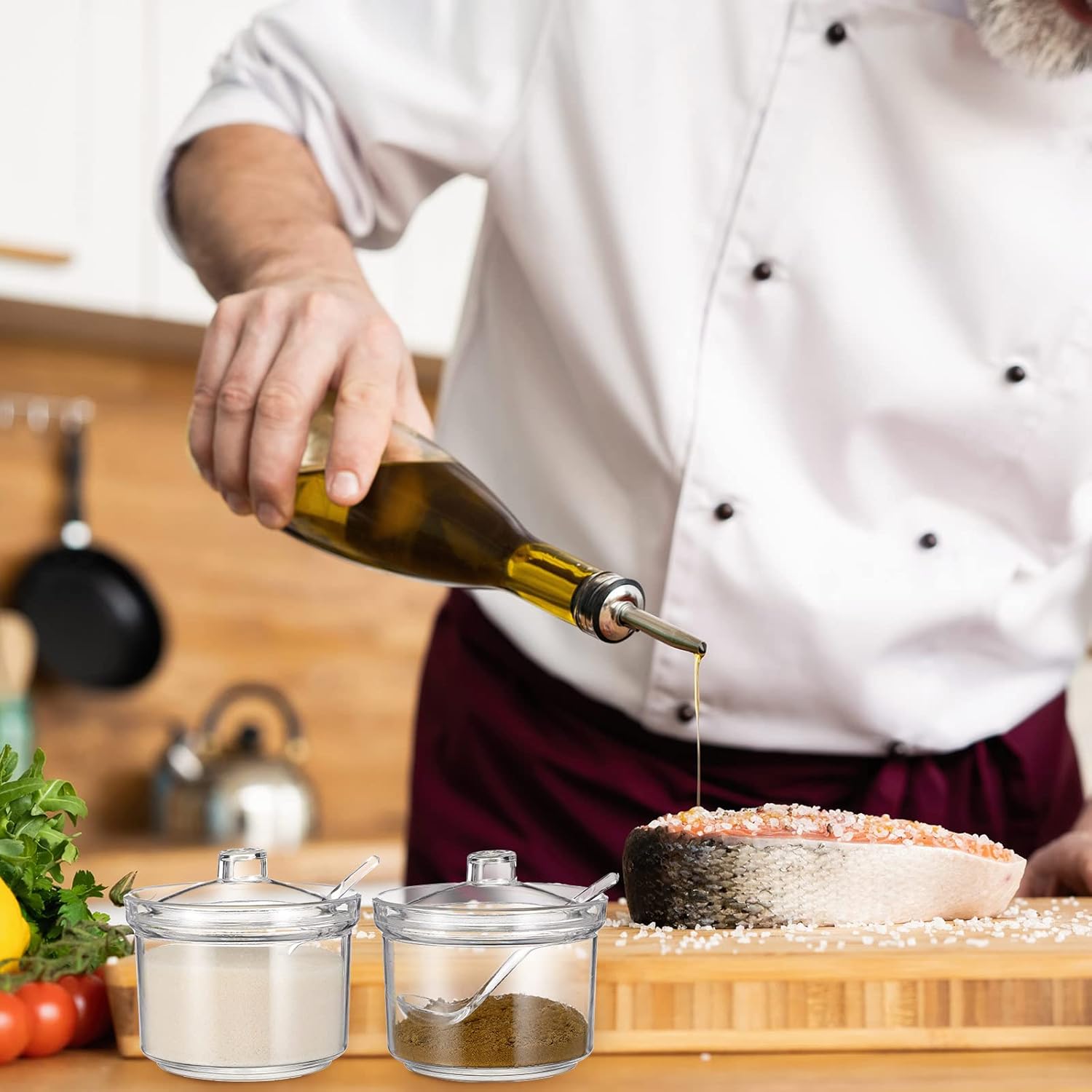 - Wide range of use: spice jar with lid can be applied for storing sugar, salt, tea, spices, condiments and so on, it can be applied to a variety of scenarios and make your kitchen look more neat and beautiful