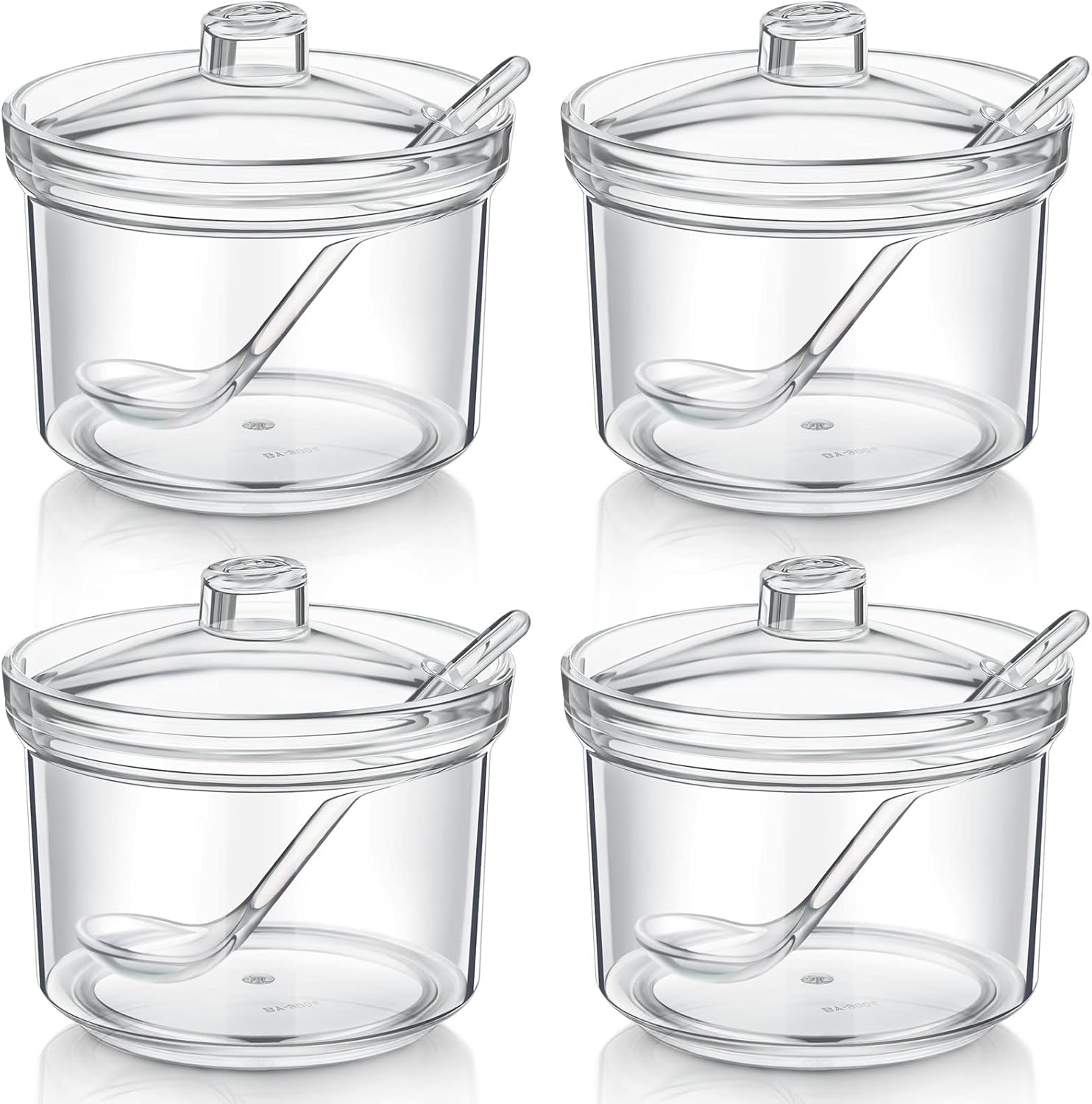 Patelai 4 Pieces Sugar Bowl Acrylic Clear Sugar Bowl with Lid and Salt Spoon Storage Jar with Airtight Lid for Salt, Tea, Spices, Herbs, Condiments(13 oz)