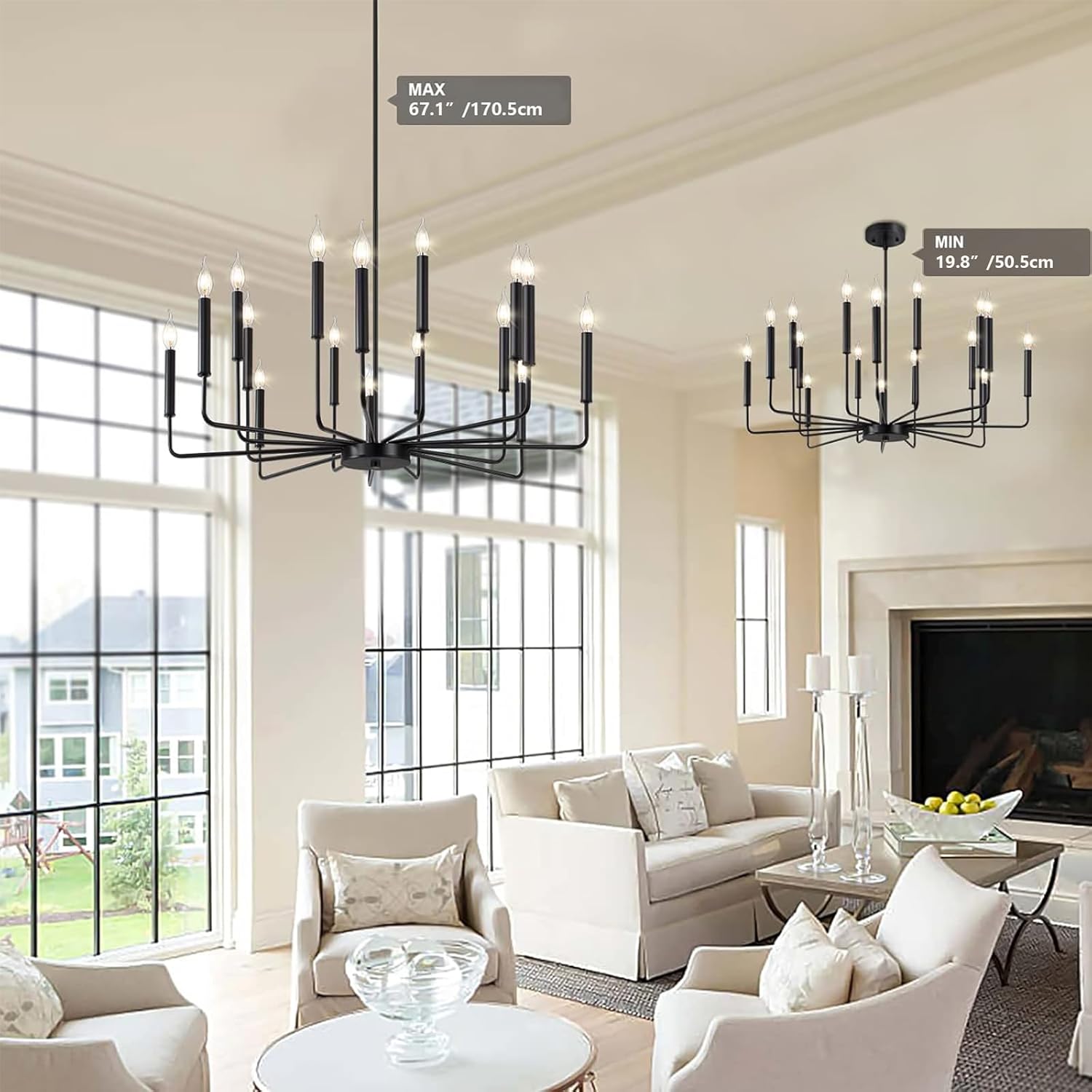 Modern Black Farmhouse Chandeliers, 16-Light Industrial Metal Chandelier Lighting, Classic Candle Hanging Pendant Light Fixtures for Kitchen Island, Living Room, Dining Room, Stair