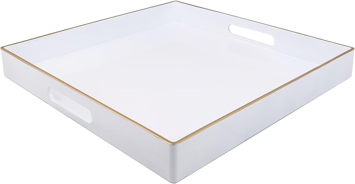 Spsyrine Decorative Tray, 13" Plastic Square Coffee Table Tray with Handles for Living Room, Ottoman, Bathroom Decor