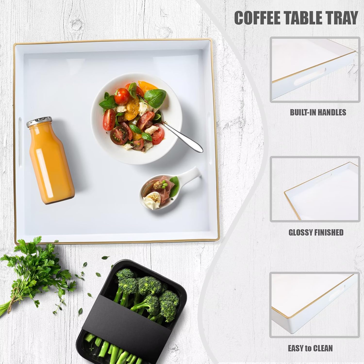 - Unique: Beautiful decorating trays with a glossy finish, giving them unique look appeal that adds to the home's charm. The organizer tray may also be used as a storage bin for small items like keys or TV remotes