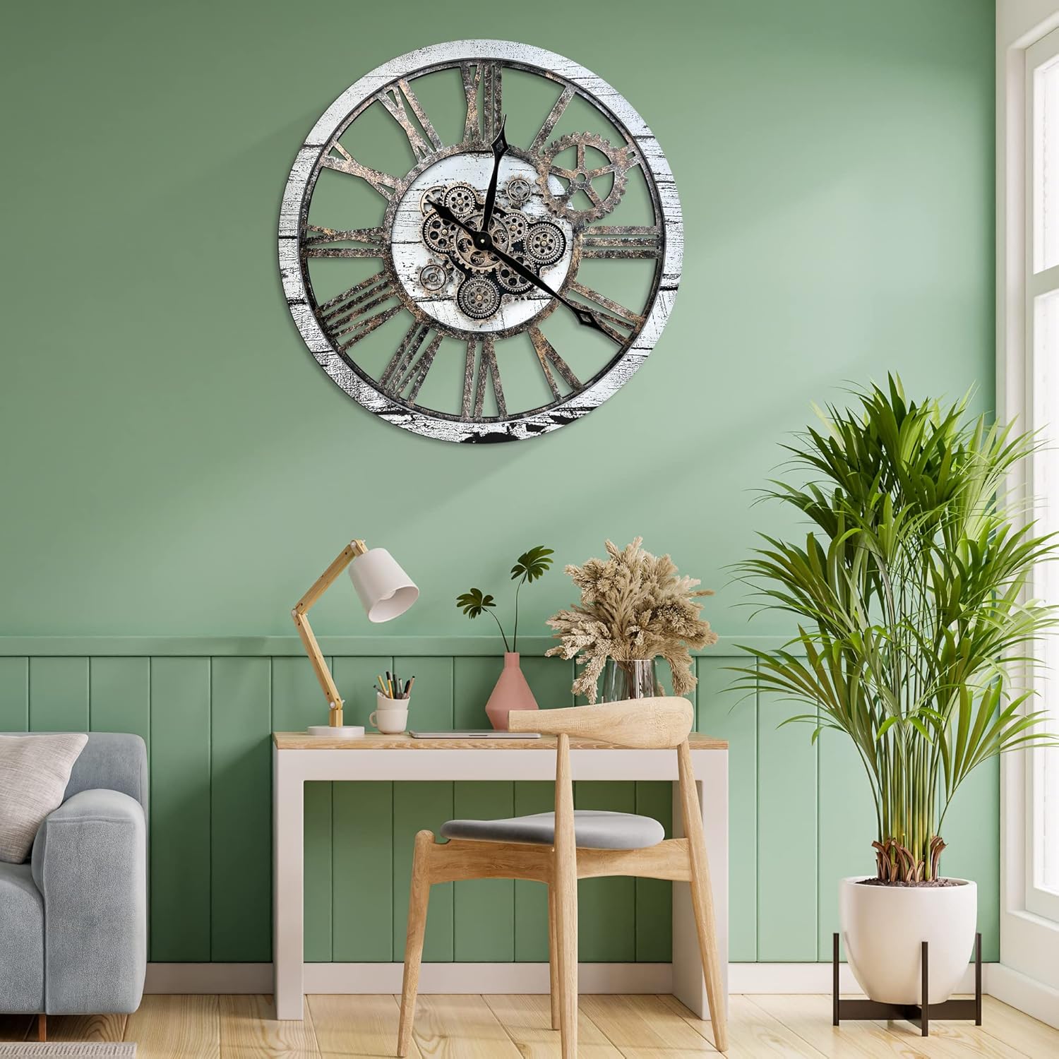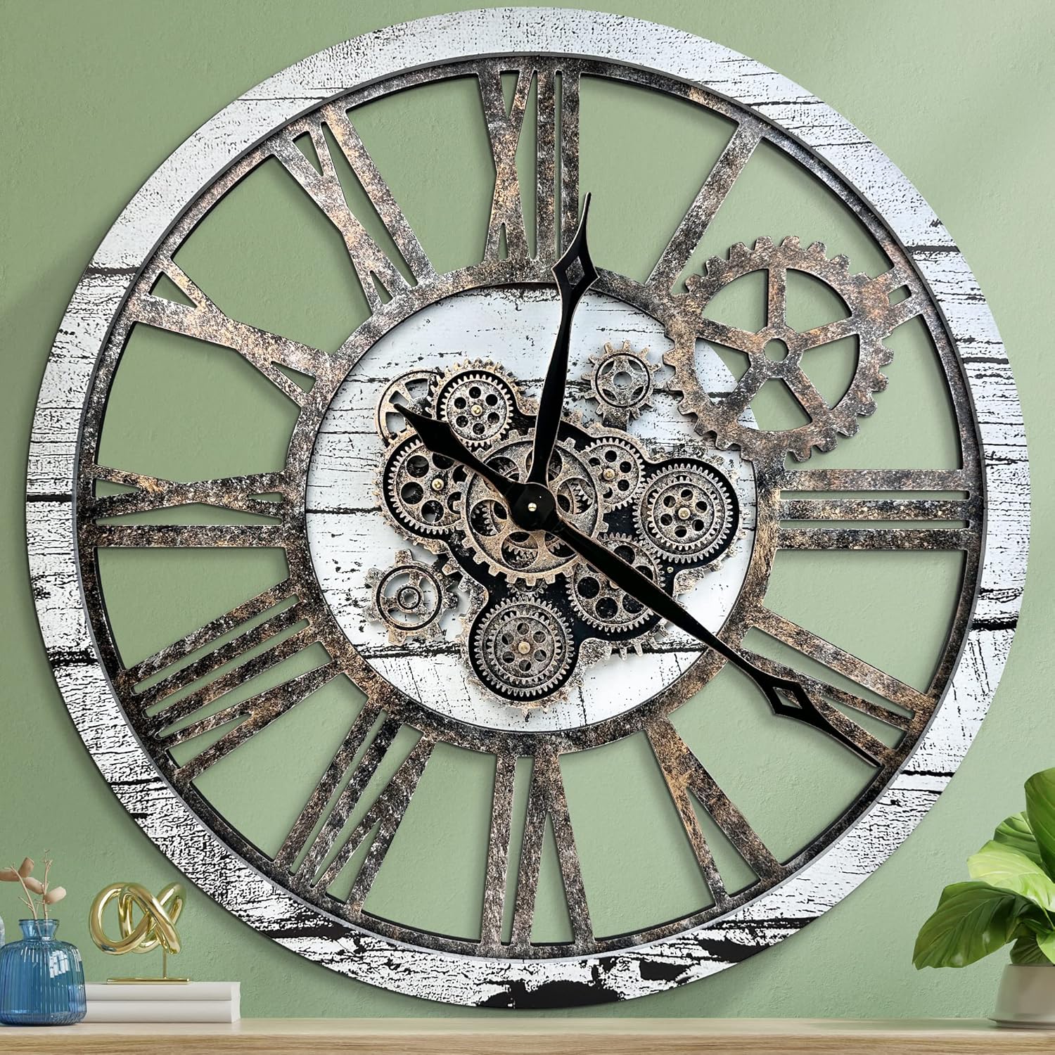 HOIBAI Large Wall Clock, Wall Clocks for Living Room Decor 36 Inch Farmhouse Vintage Rustic Kitchen Wall Decor Vintage Roman Oversized Wall Clock for Home Bedroom House, Moving Gears Clock