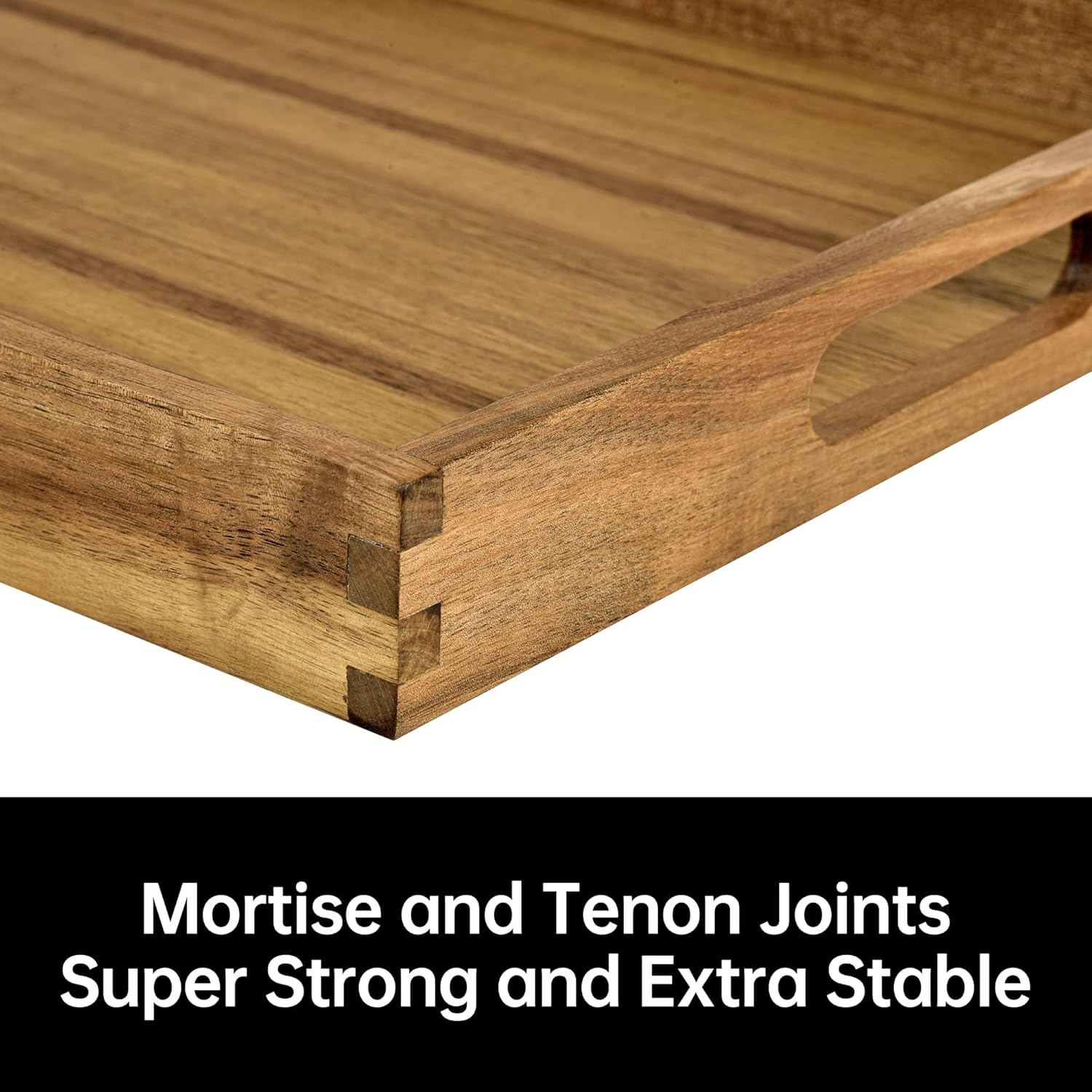 - SUPERIOR QUAKITY: Meticulously constructed using only the finest quality acacia wood and featuring excellent mortise & tenon joints, our wood trays for serving are safe, smooth, sturdy, eco-friendly, and durable enough to withstand the wear and tear of everyday use for years to come without losing their aesthetic appeal!