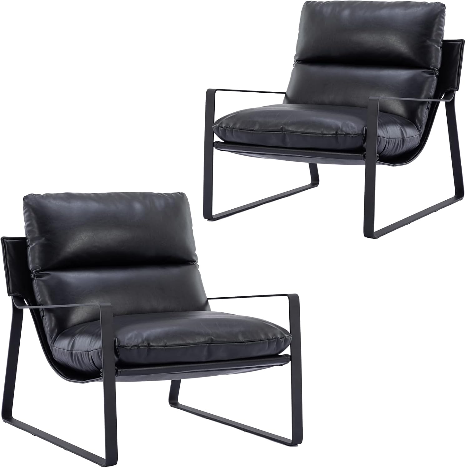 DUOMAY Mid-Century Accent Chair Armchair Set of 2, Comfy PU Leather Leisure Chair Lazy Chair with Metal Leg for Living Room Bedroom Office Apartment, Black