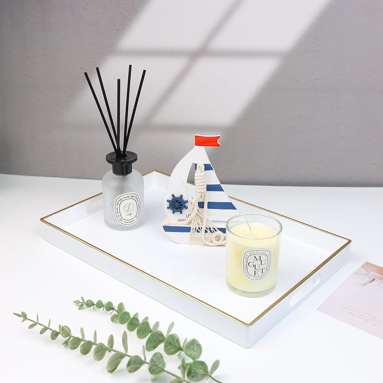Spsyrine White Decorative Serving Tray with Handles, Elegant Plastic Coffee Table Tray for Ottoman, Living Room, Home Decor 15.6" X 10.2"