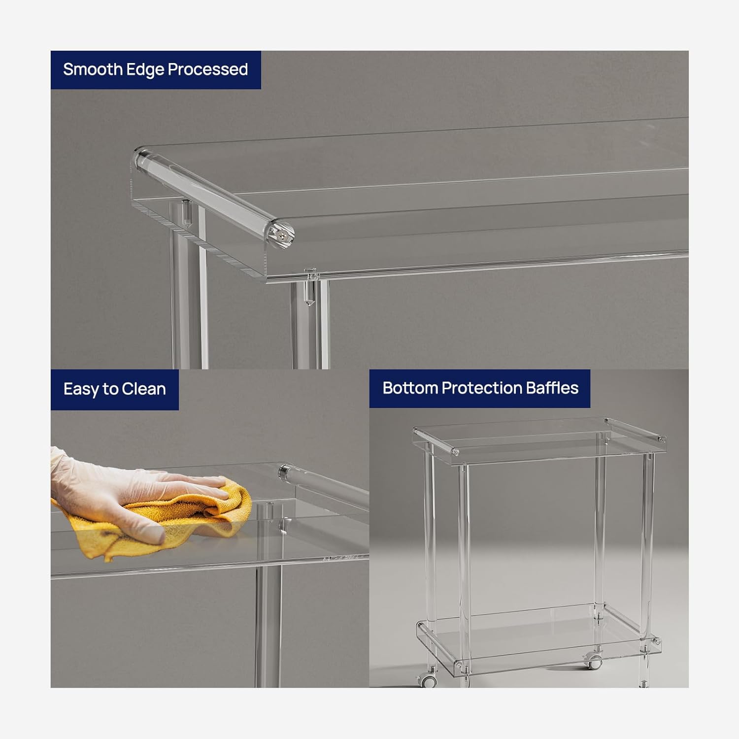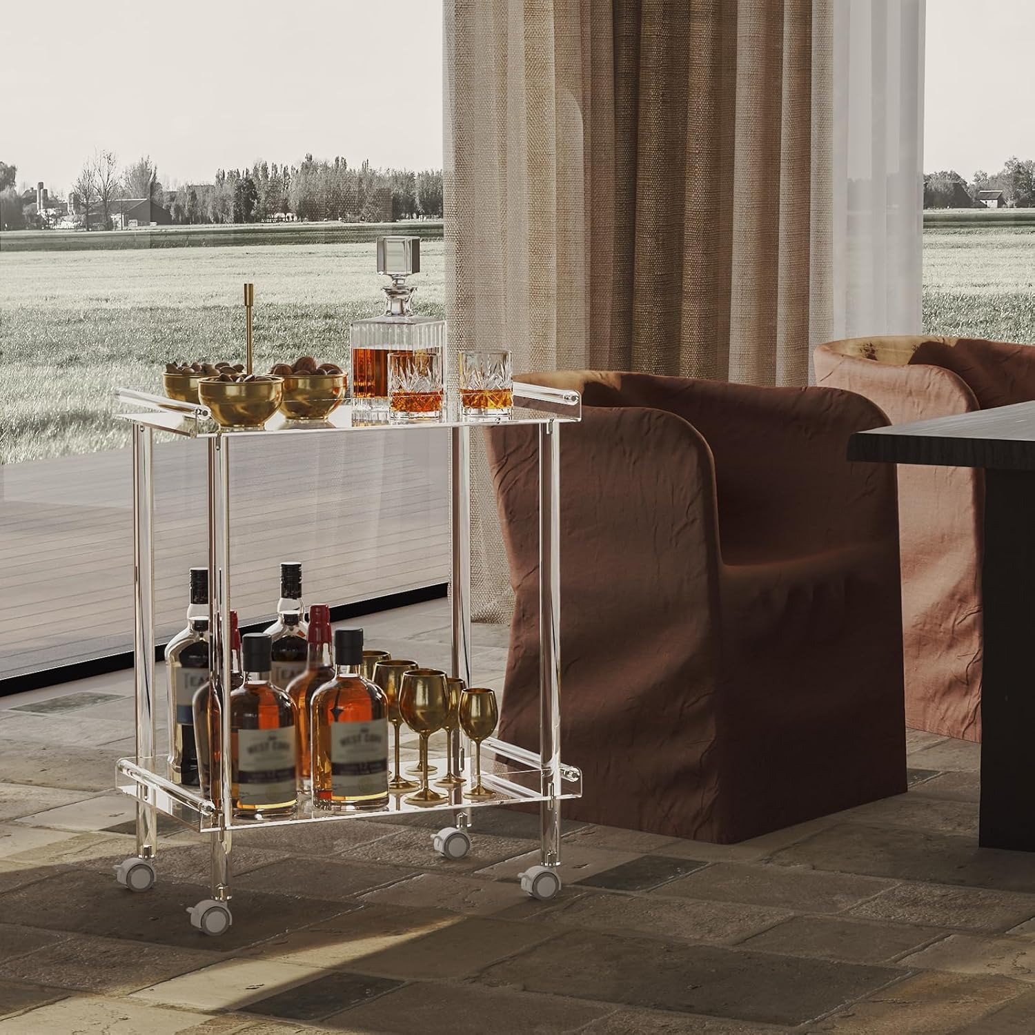 - Multifunctional Acrylic Cart: Used as a rolling serving cart to store ice buckets, shot glasses, drink trays, fruits and snacks, cakes, seasoning bottles, liquor, and more. Also suitable as a decorative table for your living room, bathroom, bar, kitchen, restaurant, or foyer.
