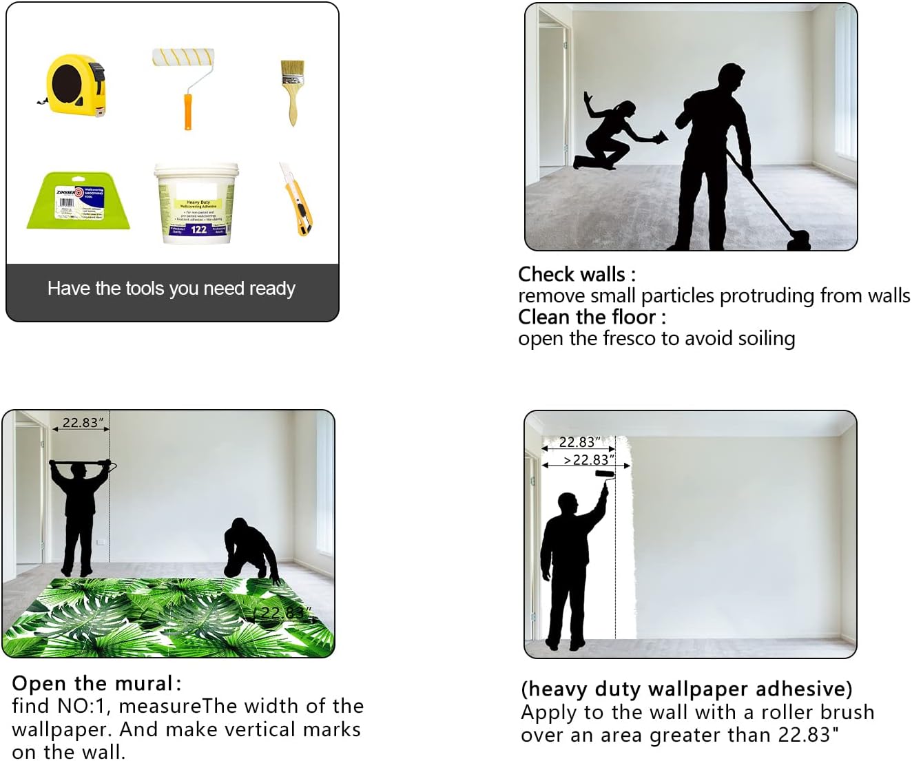 - It's easy to install: at the bottom of each mural we have a numbered sequence, You can refer to the instructions we provided and the main picture 6-7,just match the numbers and you'll be amazed!