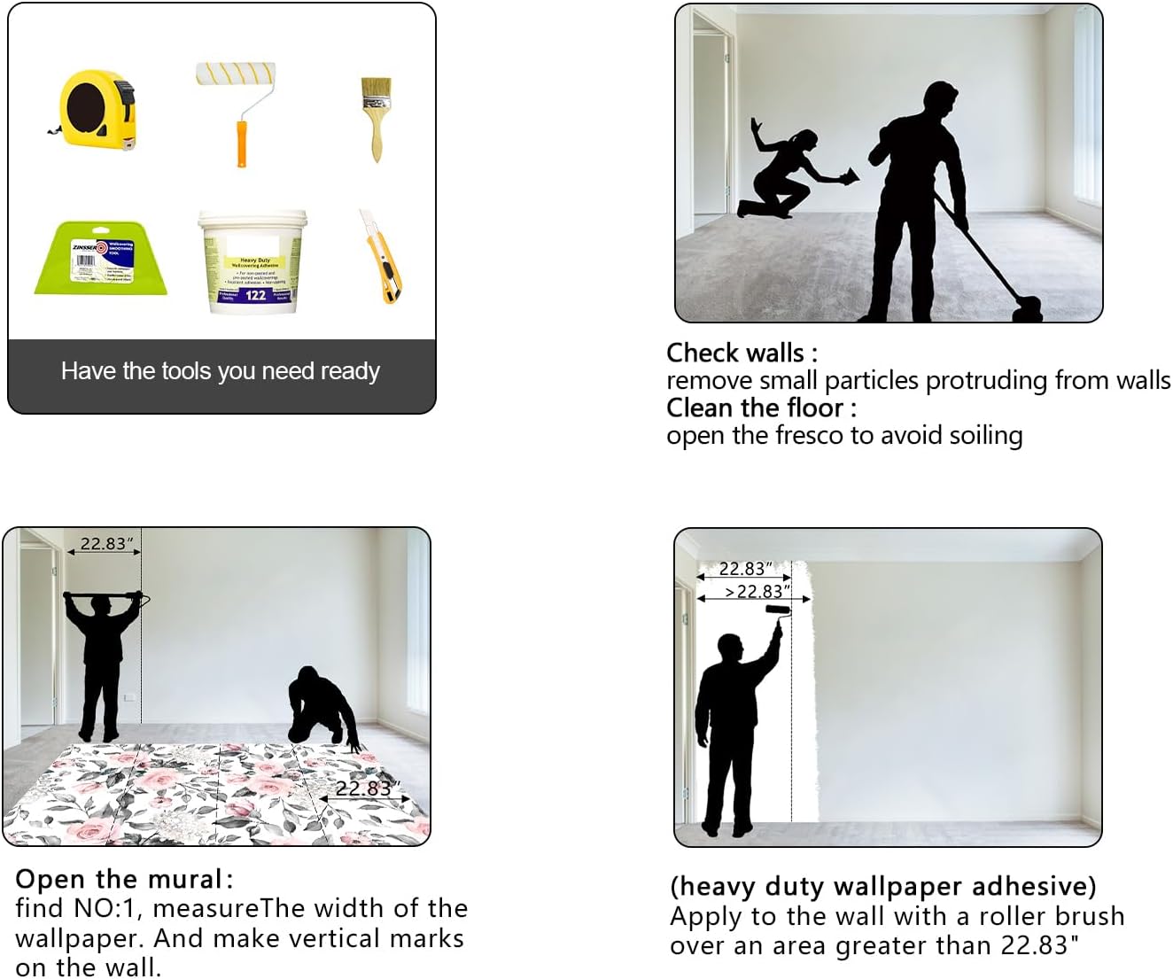 - It's easy to install: at the bottom of each mural we have a numbered sequence, You can refer to the instructions we provided and the main picture 6-7,just match the numbers and you'll be amazed!