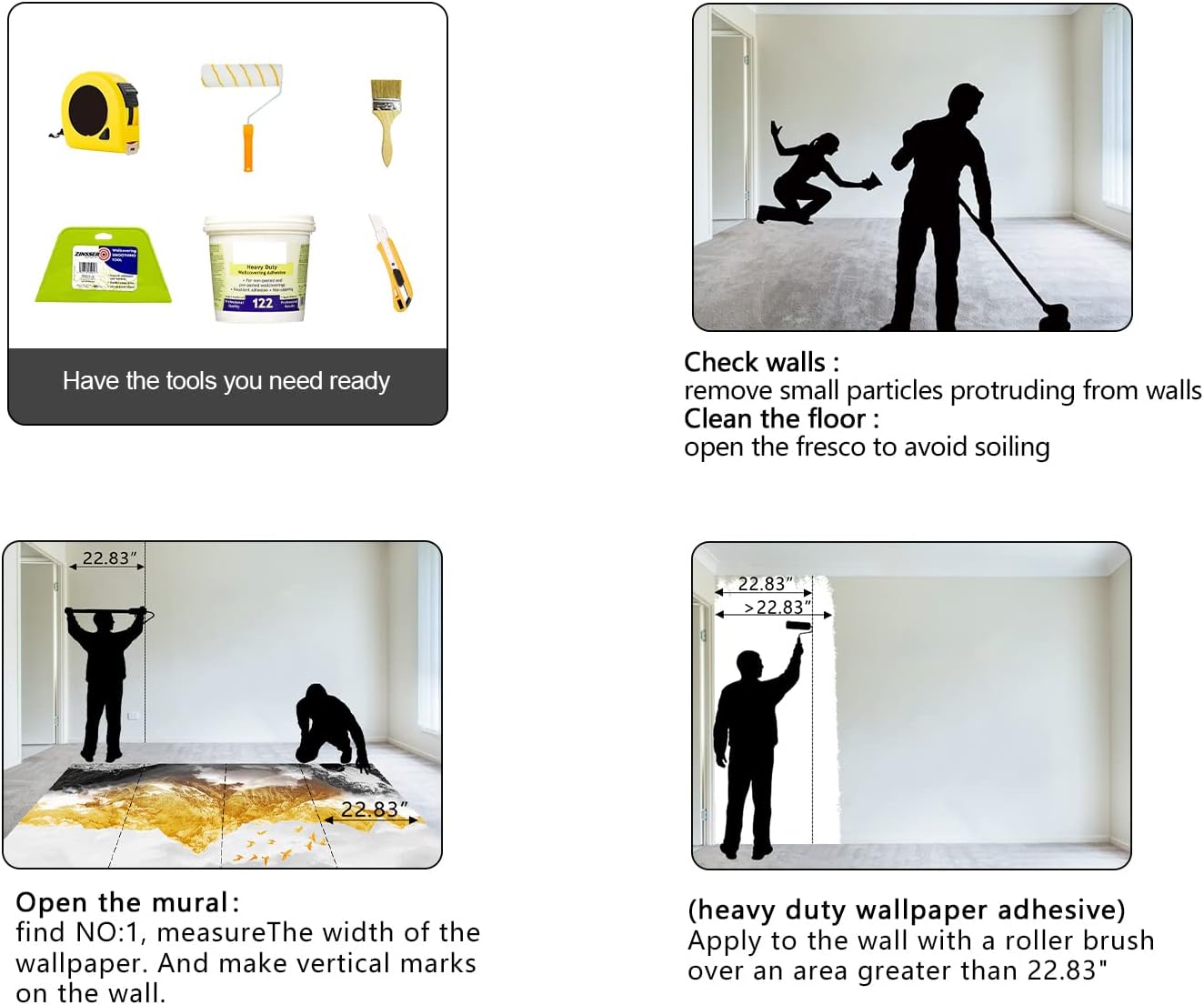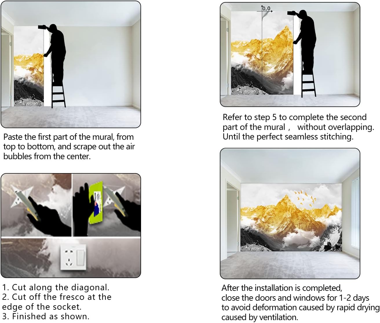 - It's easy to install: at the bottom of each mural we have a numbered sequence, You can refer to the instructions we provided and the main picture 6-7,just match the numbers and you'll be amazed!