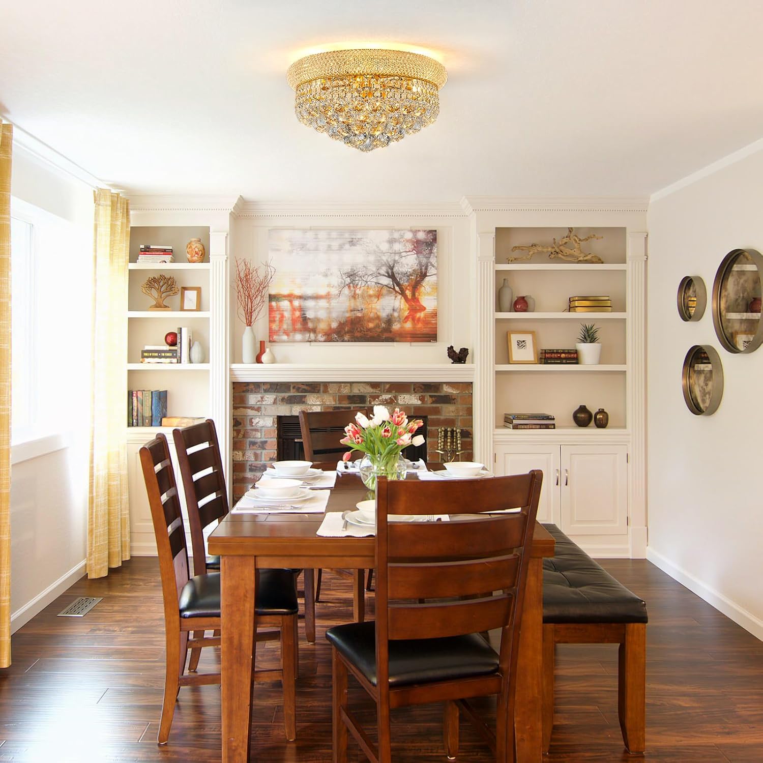 - FIXTURE DIMENSIONS:The dimension of Crystal Chandelier is Height 10 inch, Width 18 inch.