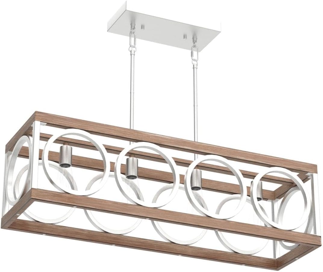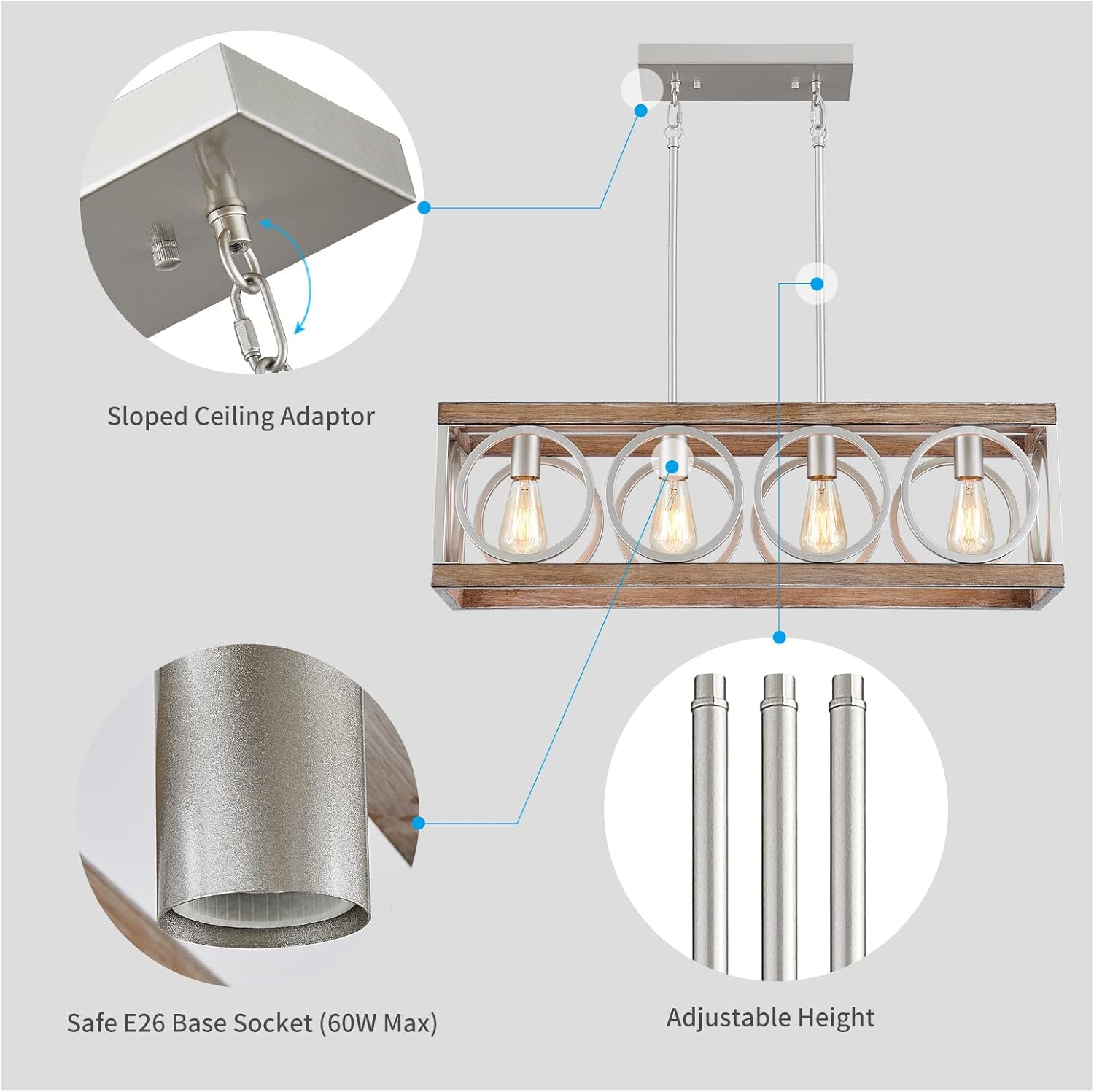 XINGQI Farmhouse Dining Room Chandeliers, Rectangle Vintage Hanging Lighting Fixtures, 4-Light Kitchen Island Lighting, Rustic Metal Chandelier Pendant Light, Antique Wood Grain XY082