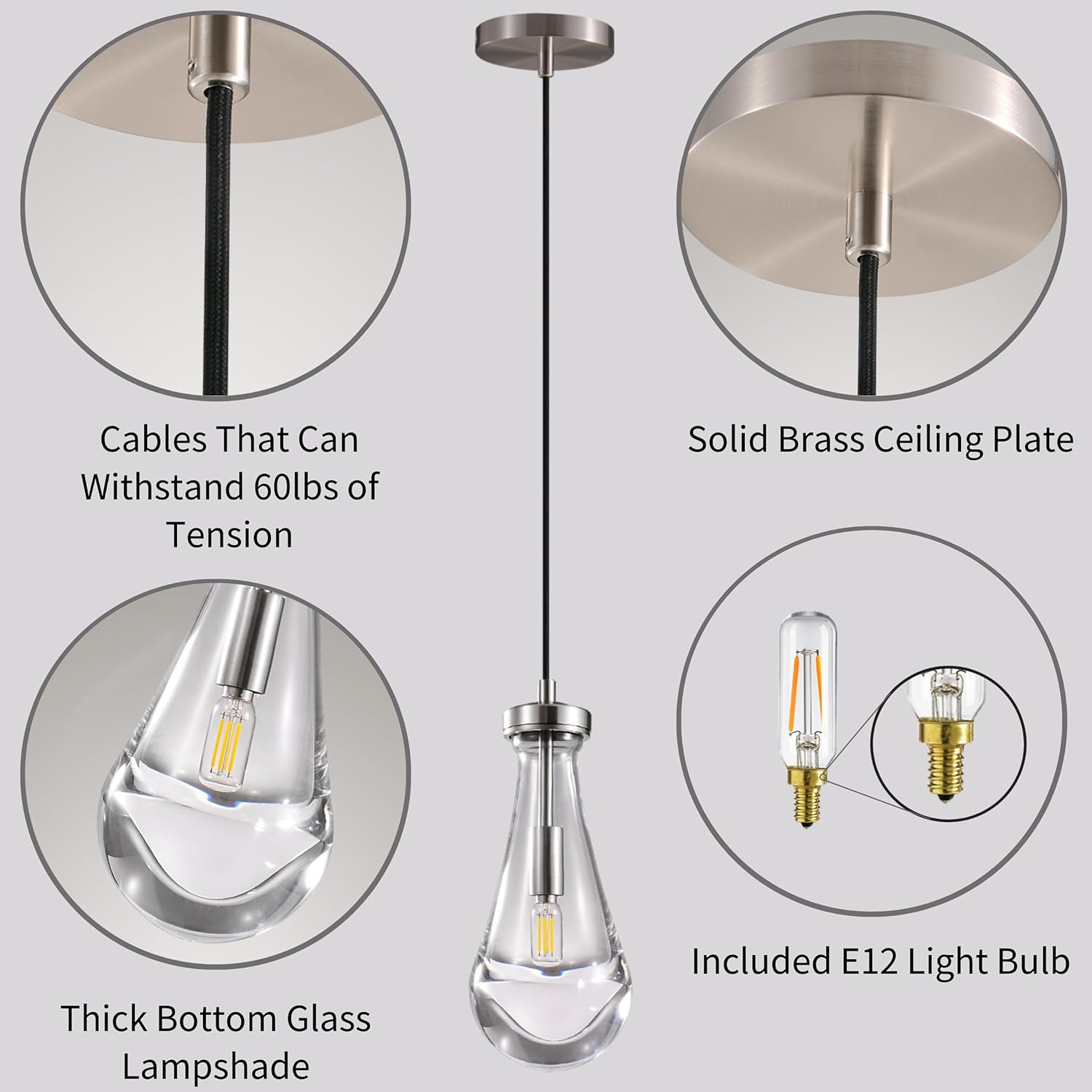 - 【Adjustable Height】 The Raindrop shade measures 5 "D x 12.5 "H with an adjustable black fabric cord 60 "L. Nickel pendant light kitchen island is perfect for bathroom, bedroom, living rooms, hallways, foyers, bars, or cafes.