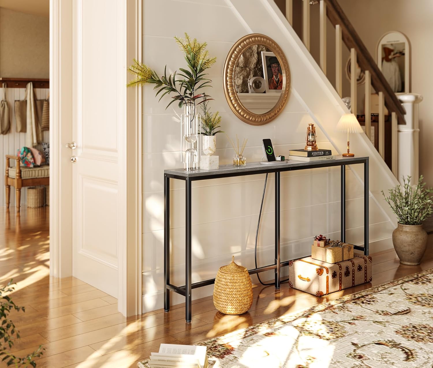 - [Quality Never Let You Down]: Sturdy P2 particle board works well with a durable metal frame, giving the hallway table for entryway surface a supporting bearing up to 55 lbs. Exactly a long-time service investment