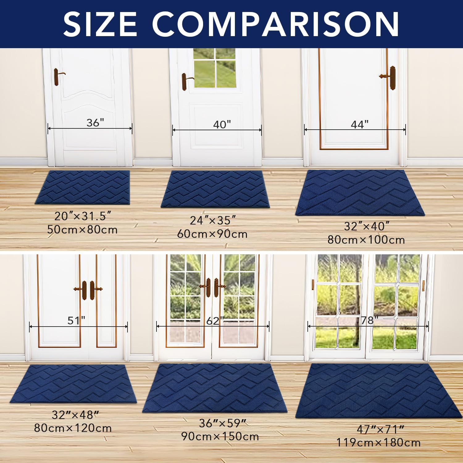 hicorfe Front Door Mat Outside Entrance,36"x59" Absorbent Muddy Dirt Resist Welcome Door Mats Outdoor Indoor,Stain and Fade Resistant,Non Slip Backing Entry Mat Doormat for Entryway(Navy Blue)