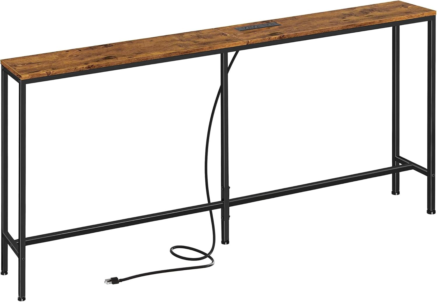 SUPERJARE 70 Inch Console Table with Outlet, Sofa Table with Charging Station, Narrow Entryway Table, Skinny Hallway Table, for Living Room, Rustic Brown