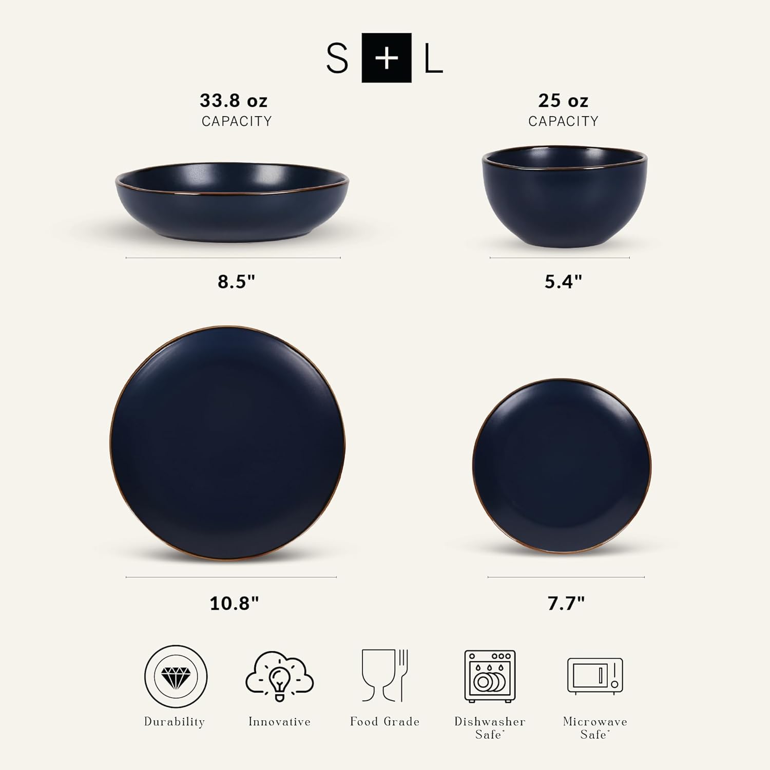 Stone Lain Brasa Modern Stoneware 16 Piece Dinnerware Sets, Plates and bowls Sets, Dish Set for 4, Blue