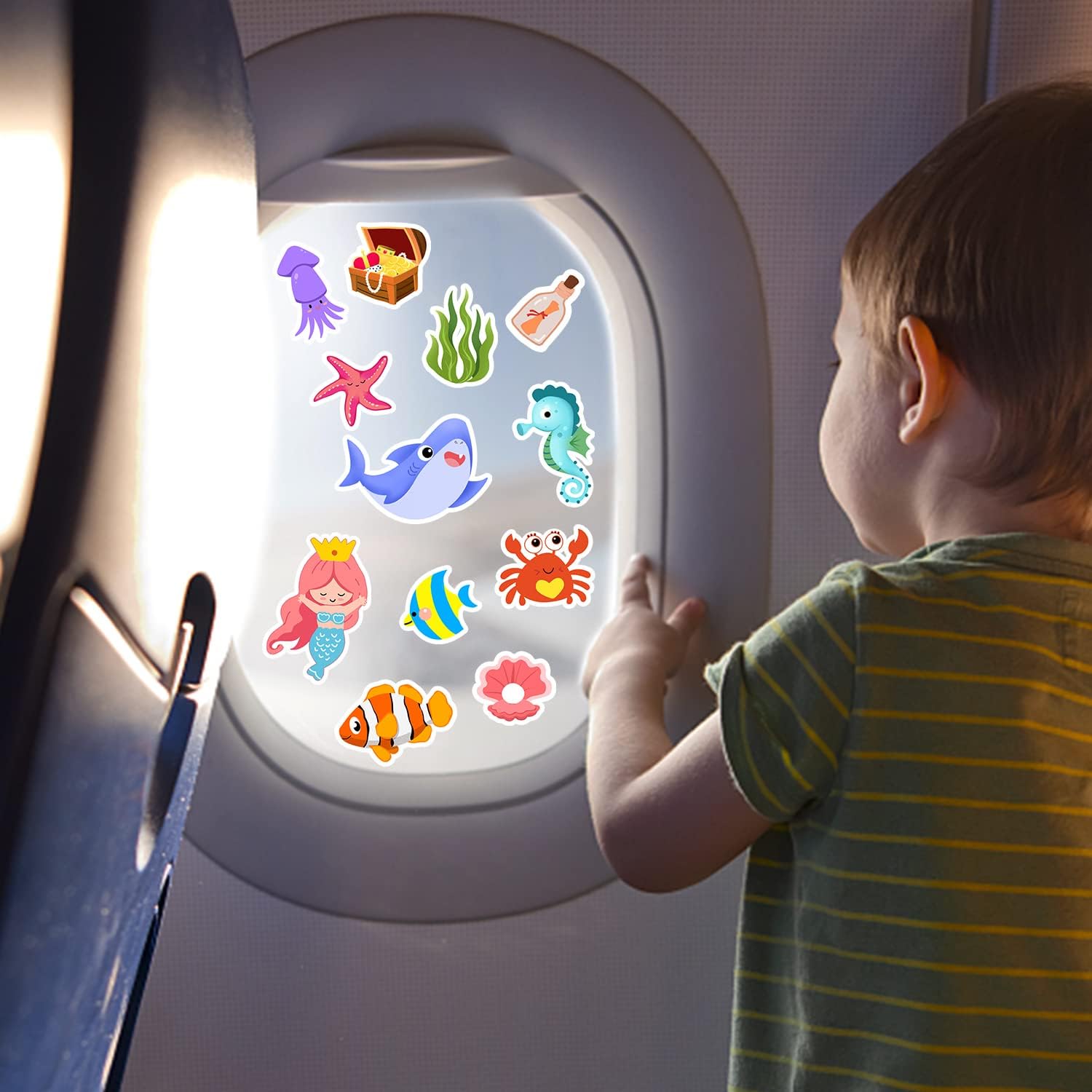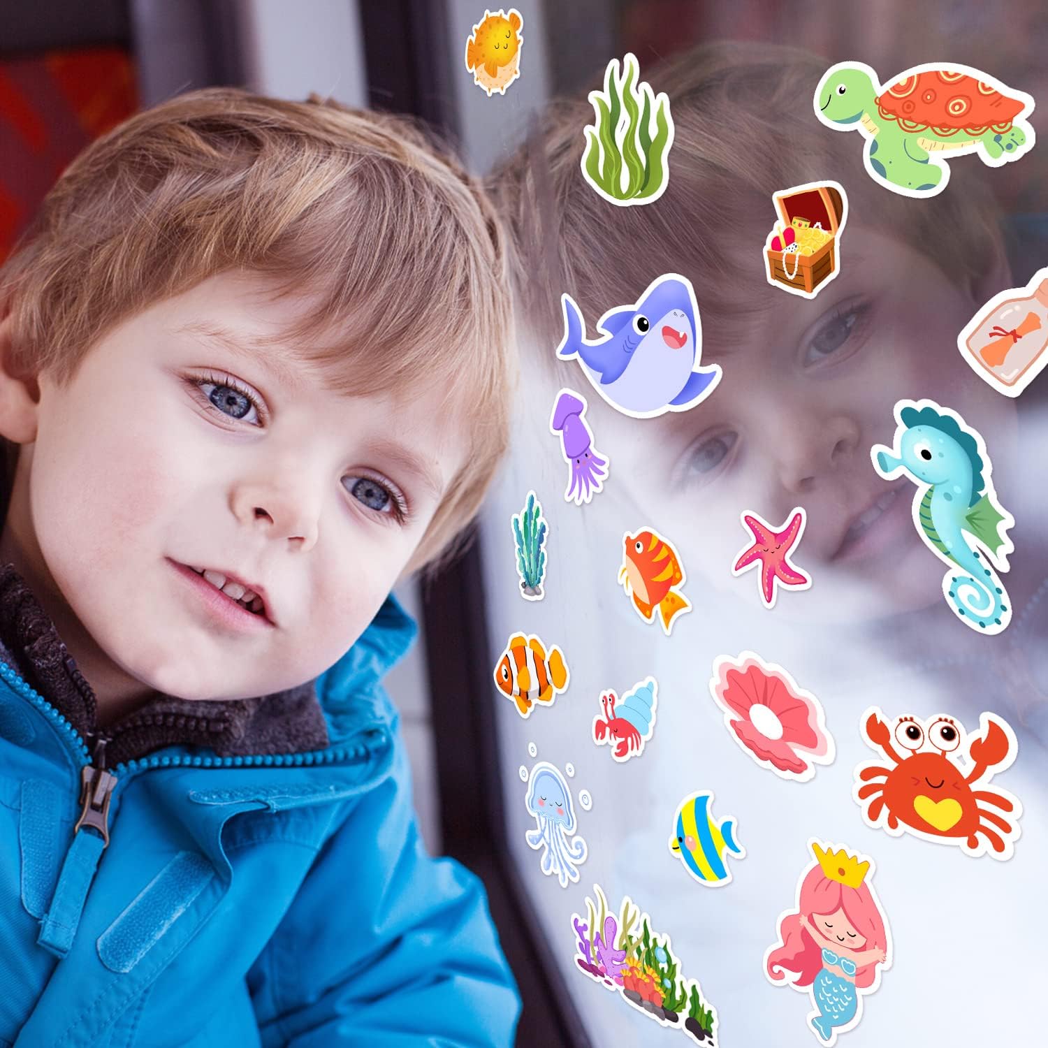 Sea Animals Gel Clings for Kids, 21PCS Thick Vinyl Decals, Cartoon Animal Stickers for Classroom, Home, Nursery, Airplane Birthday Party Supplies, Reusable, Water Resistant, Indoor Usage